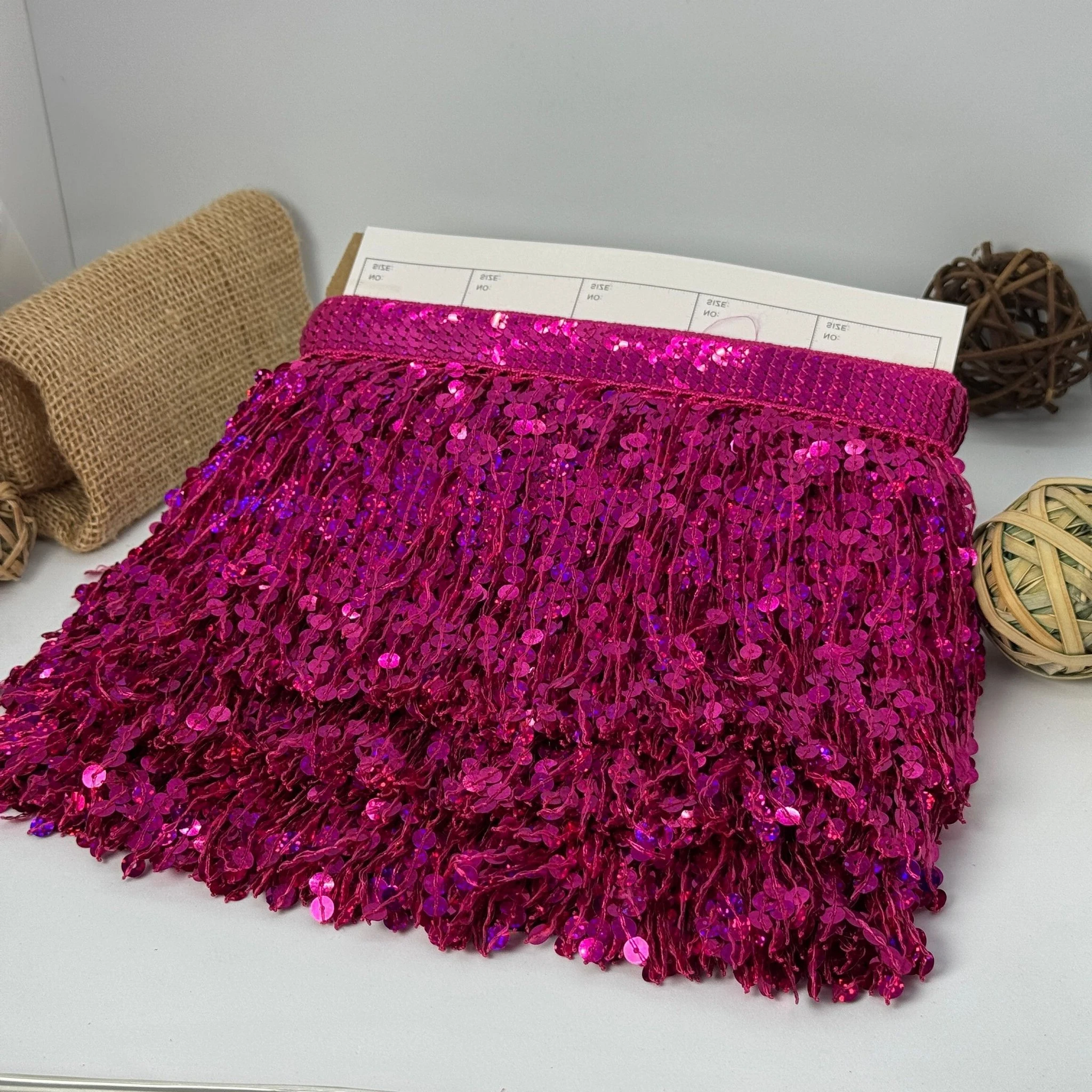 Бахрома танцювальна з паєткою — декоративна тасьма з довгими нитками, прикрашеними блискучими паєтками. Легка, еластична та динамічна, вона красиво рухається під час танцю, створюючи ефект мерехтіння.