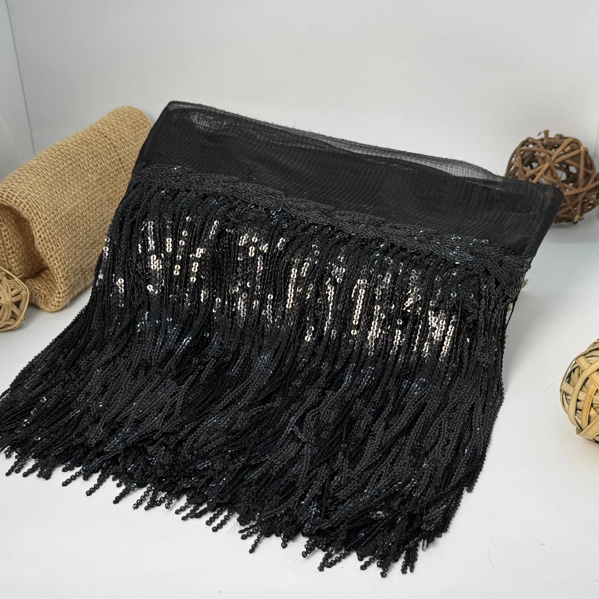 Бахрома танцювальна з паєткою на сітці «Іскри пристрасті» 20 см (9.1 метр), 1 чорний