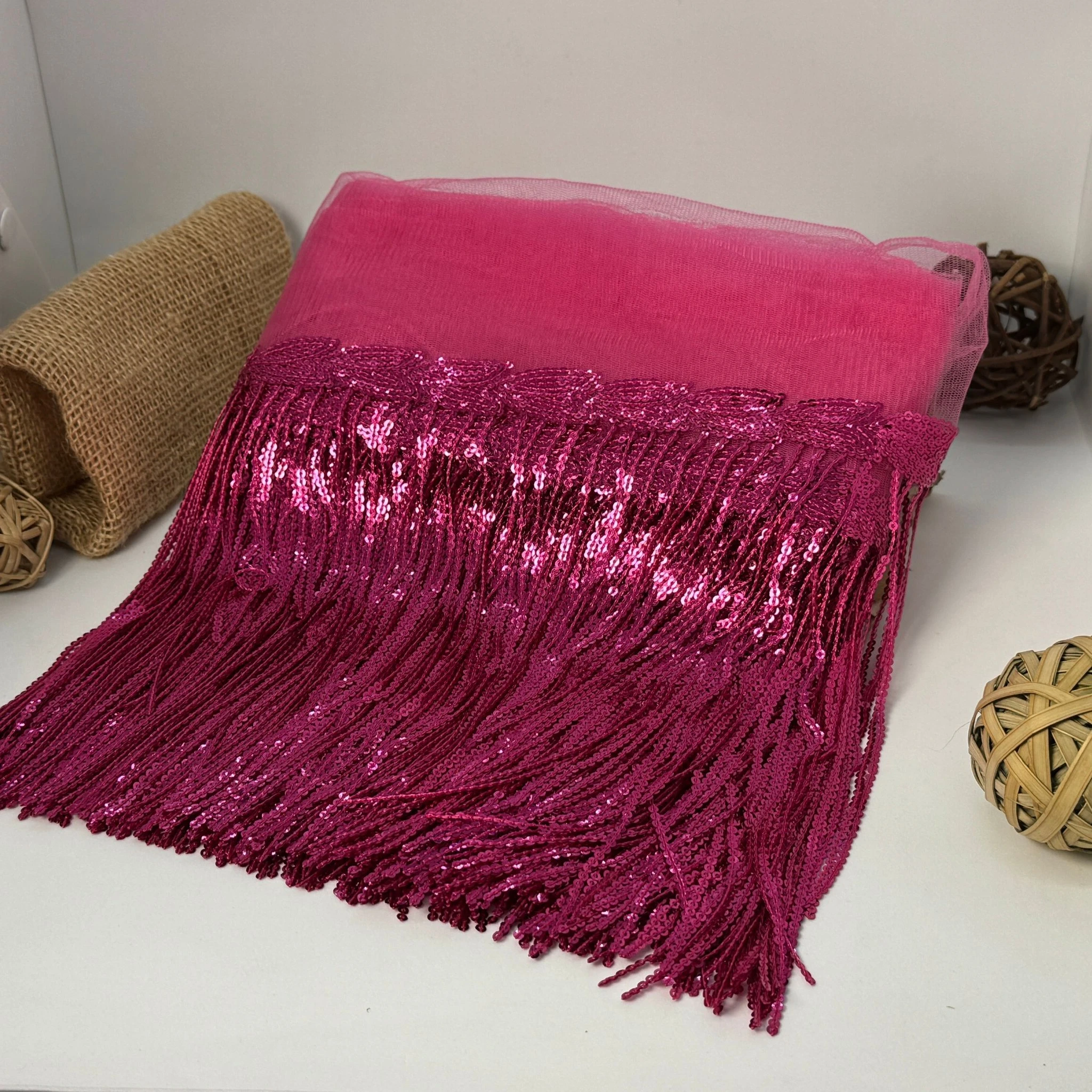 Бахрома з паєтками додає виробам яскравості, святковості та ефектності кожного руху.