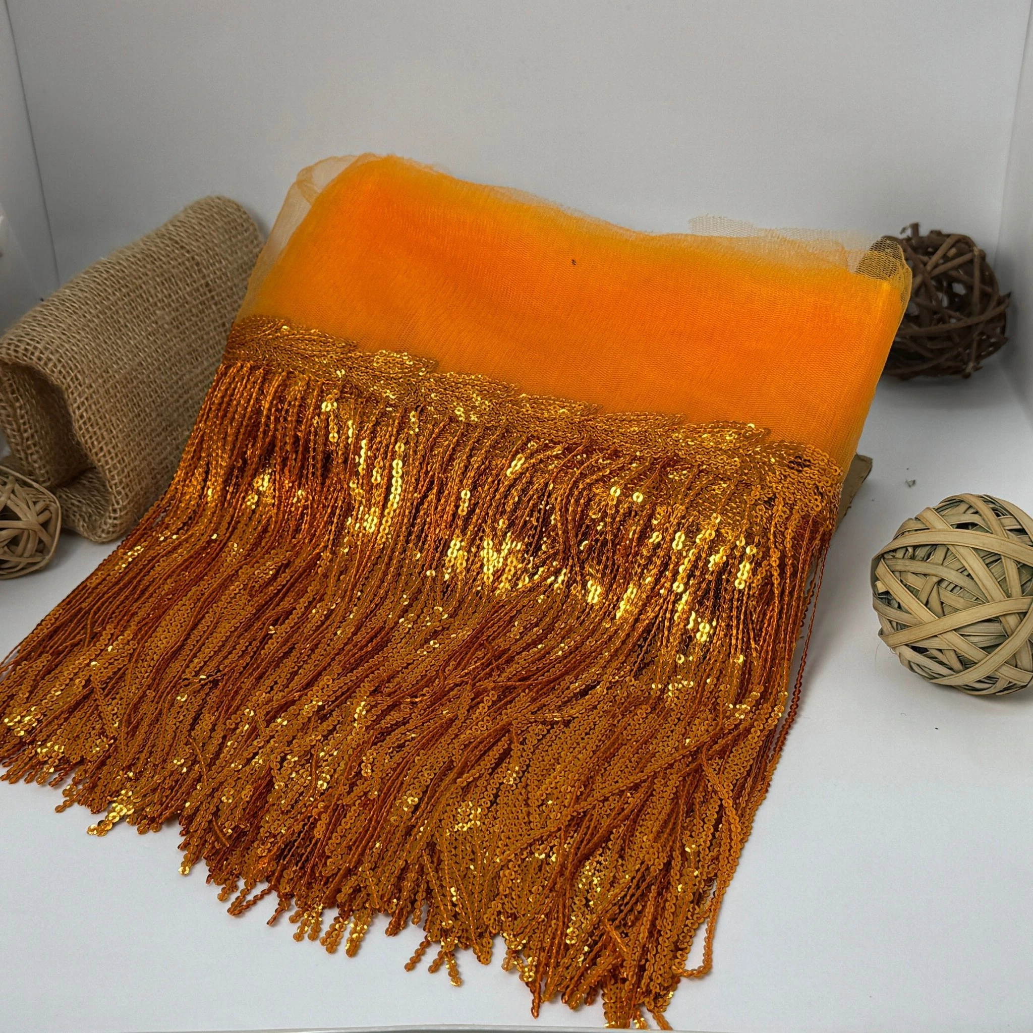 Бахрома танцювальна з паєткою на сітці «Іскри пристрасті» 20 см (9.1 метр), 13 помаранчевий