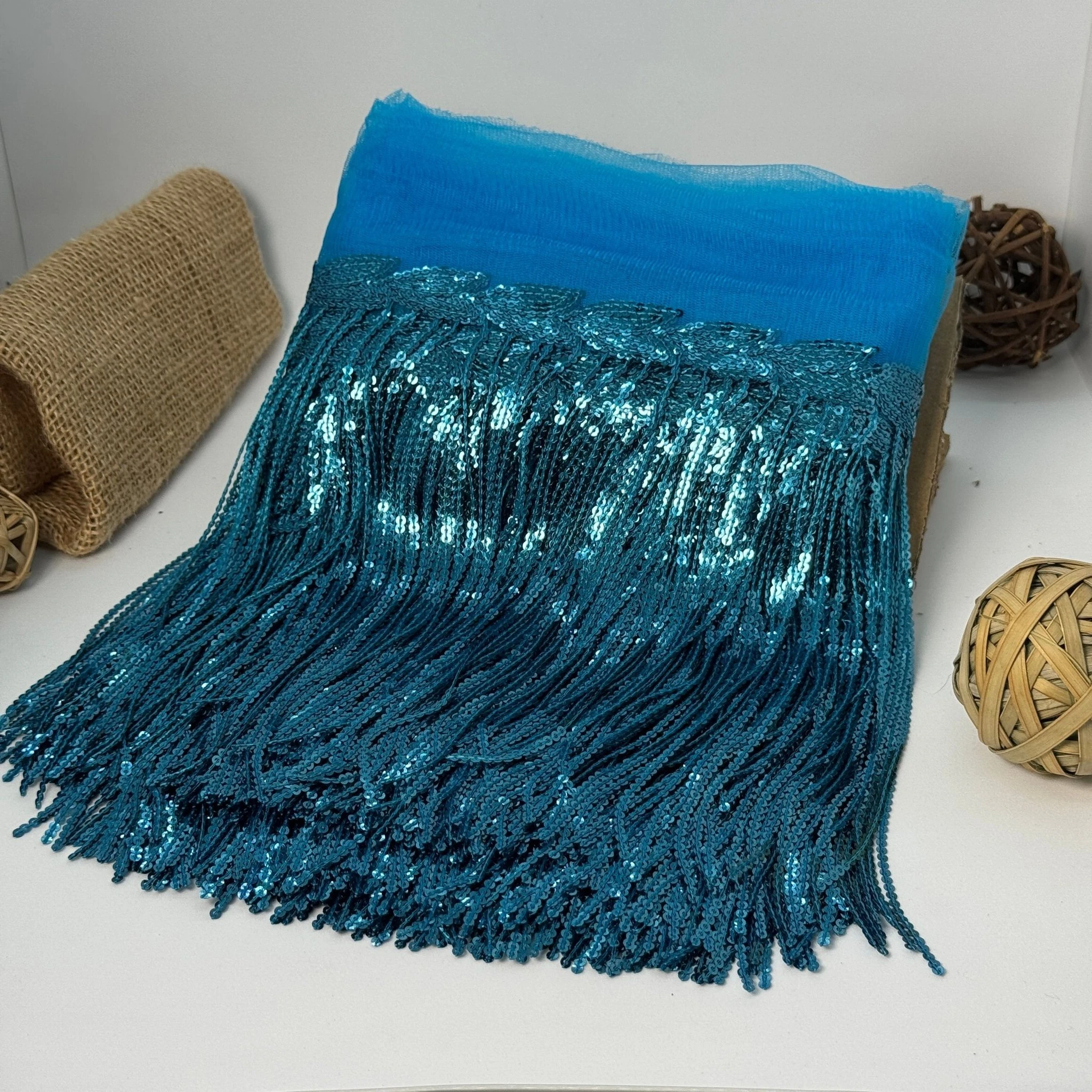 Бахрома танцювальна з паєткою на сітці «Іскри пристрасті» 20 см (9.1 метр), 14 світлий блакитний