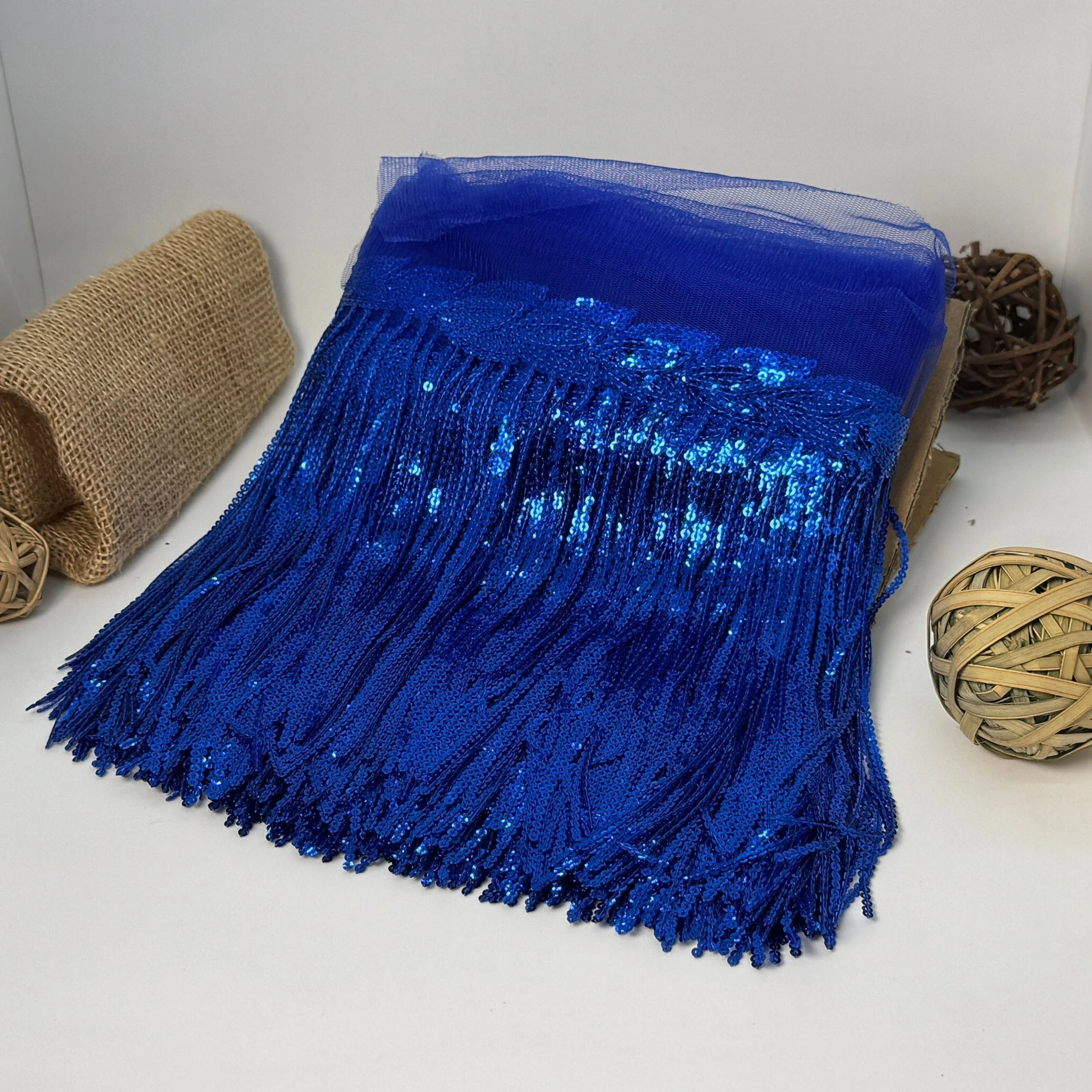 Бахрома танцювальна з паєткою на сітці «Іскри пристрасті» 20 см (9.1 метр), 15 синій