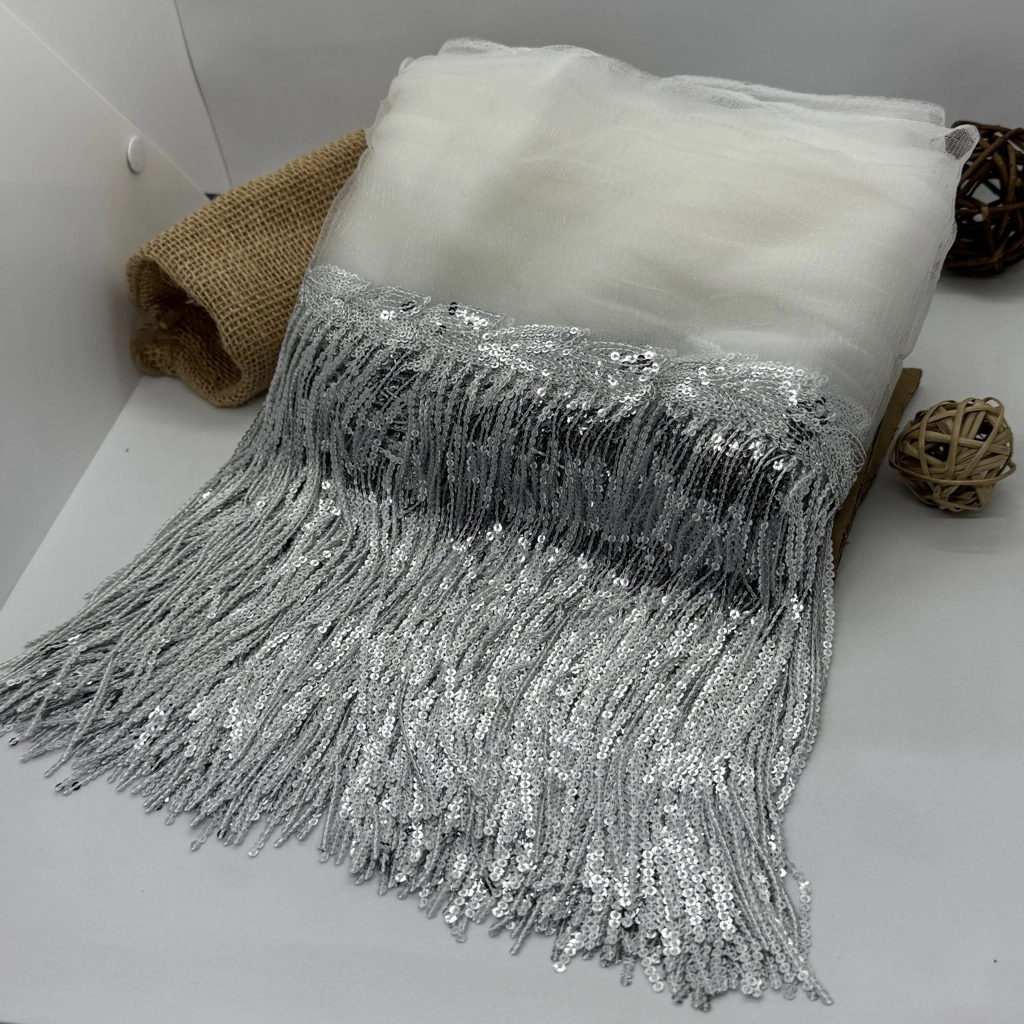 Бахрома танцювальна з паєткою на сітці «Іскри пристрасті» 20 см (9.1 метр), 2 срібло