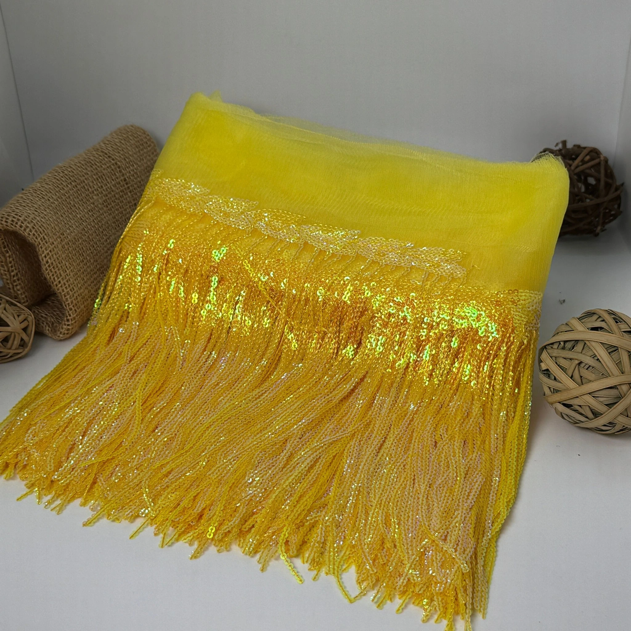Бахрома з паєтками додає виробам яскравості, святковості та ефектності кожного руху.
