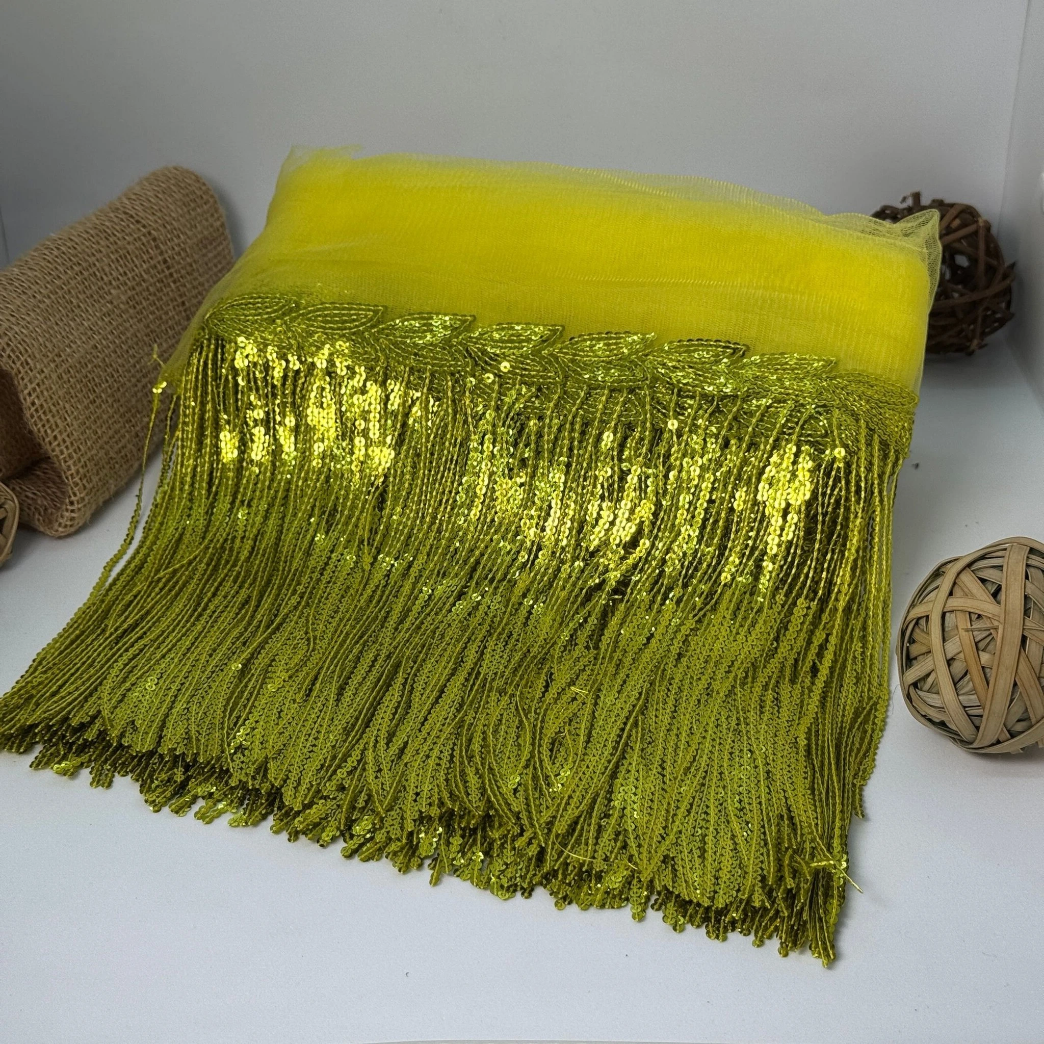 Бахрома танцювальна з паєткою на сітці «Іскри пристрасті» 20 см (9.1 метр), 27 лайм