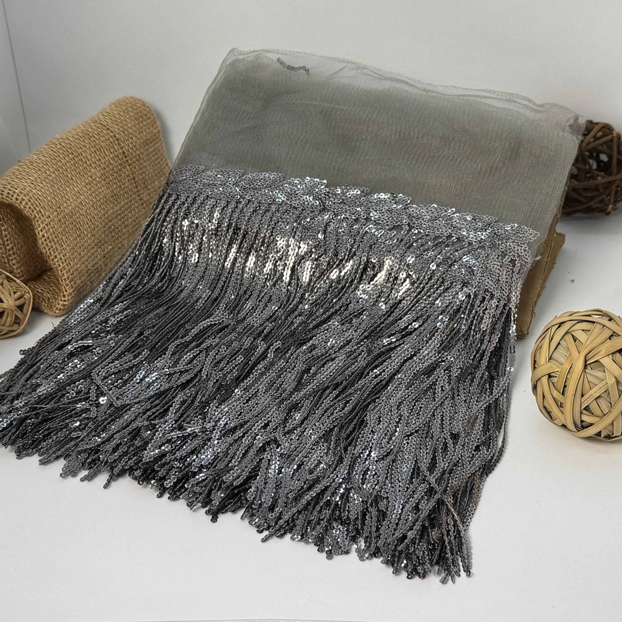 Бахрома танцювальна з паєткою на сітці «Іскри пристрасті» 20 см (9.1 метр), 3 сірий