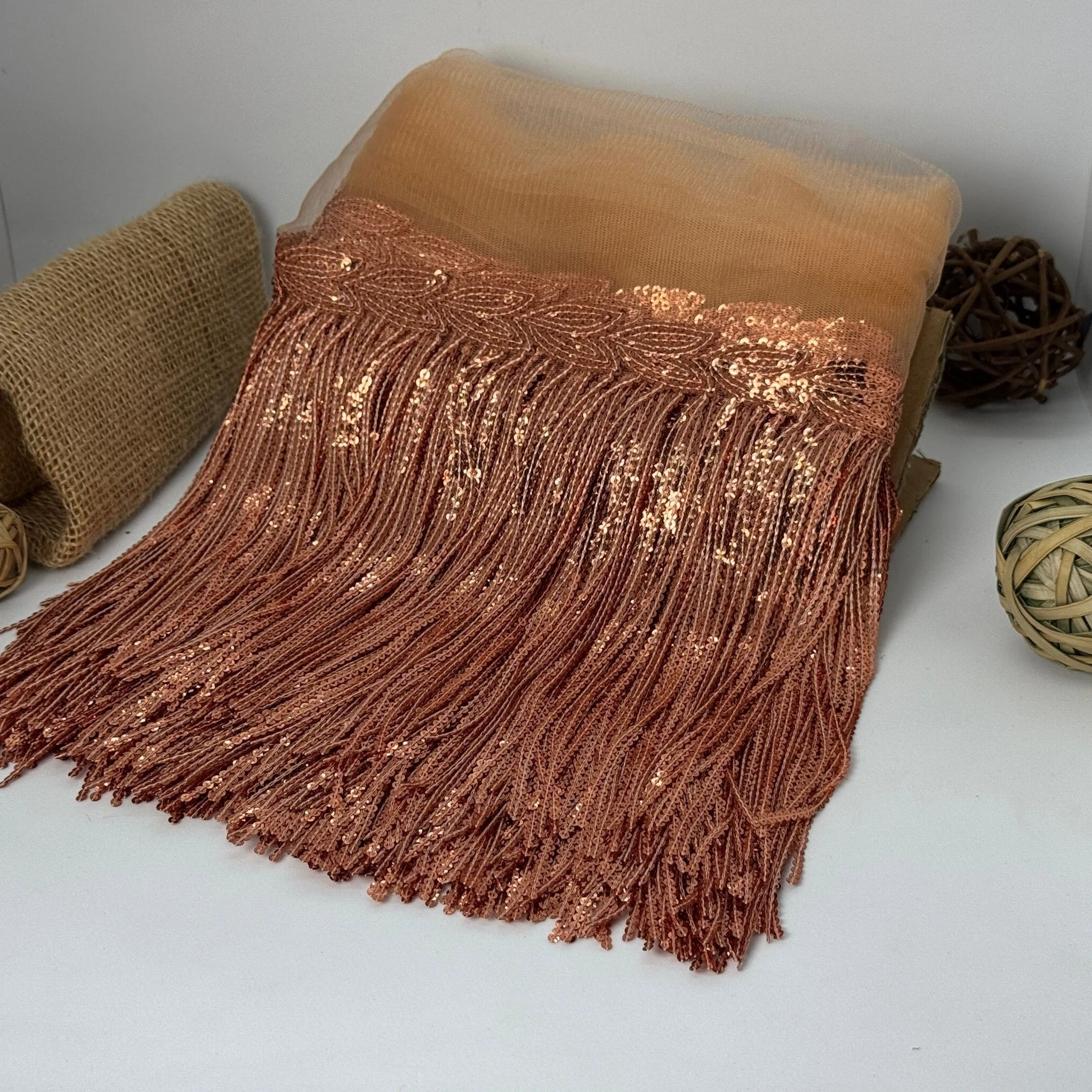 Бахрома танцювальна з паєткою на сітці «Іскри пристрасті» 20 см (9.1 метр), 30 рожеве золото