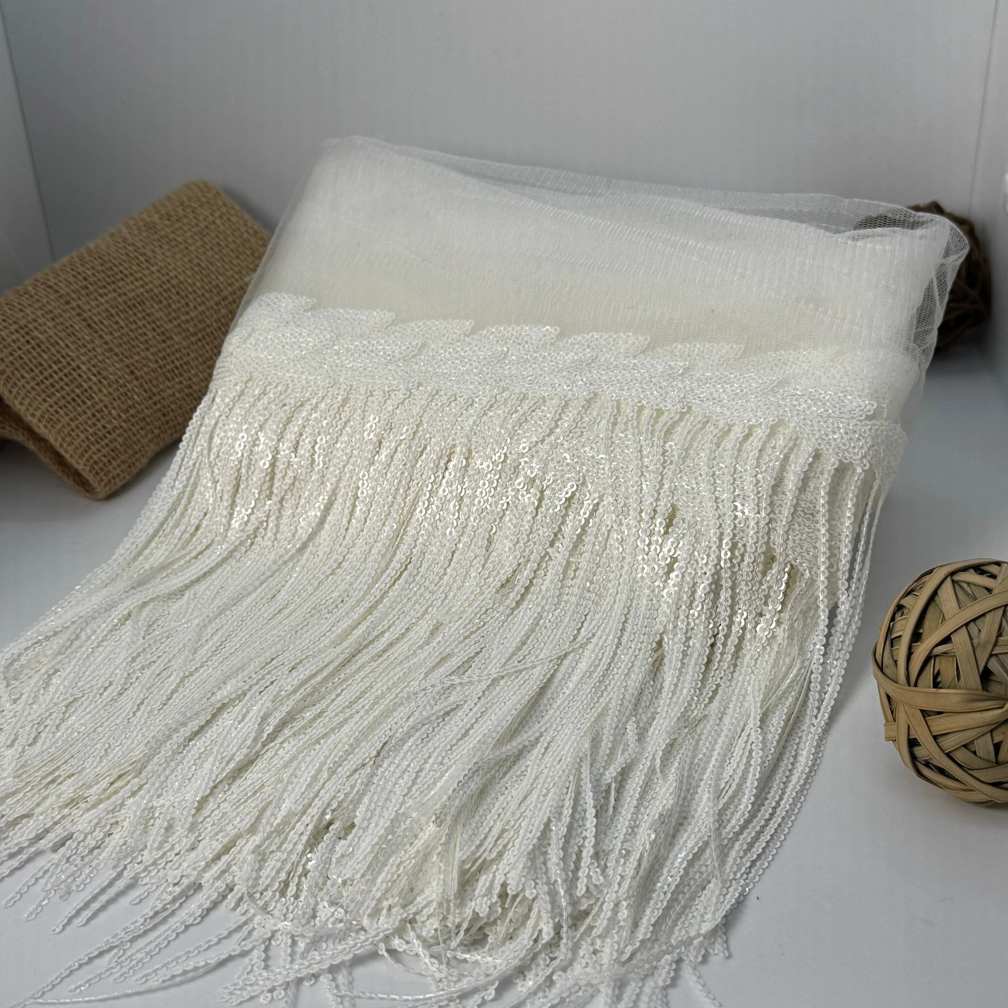 Бахрома танцювальна з паєткою на сітці «Іскри пристрасті» 20 см (9.1 метр), 33 айворі