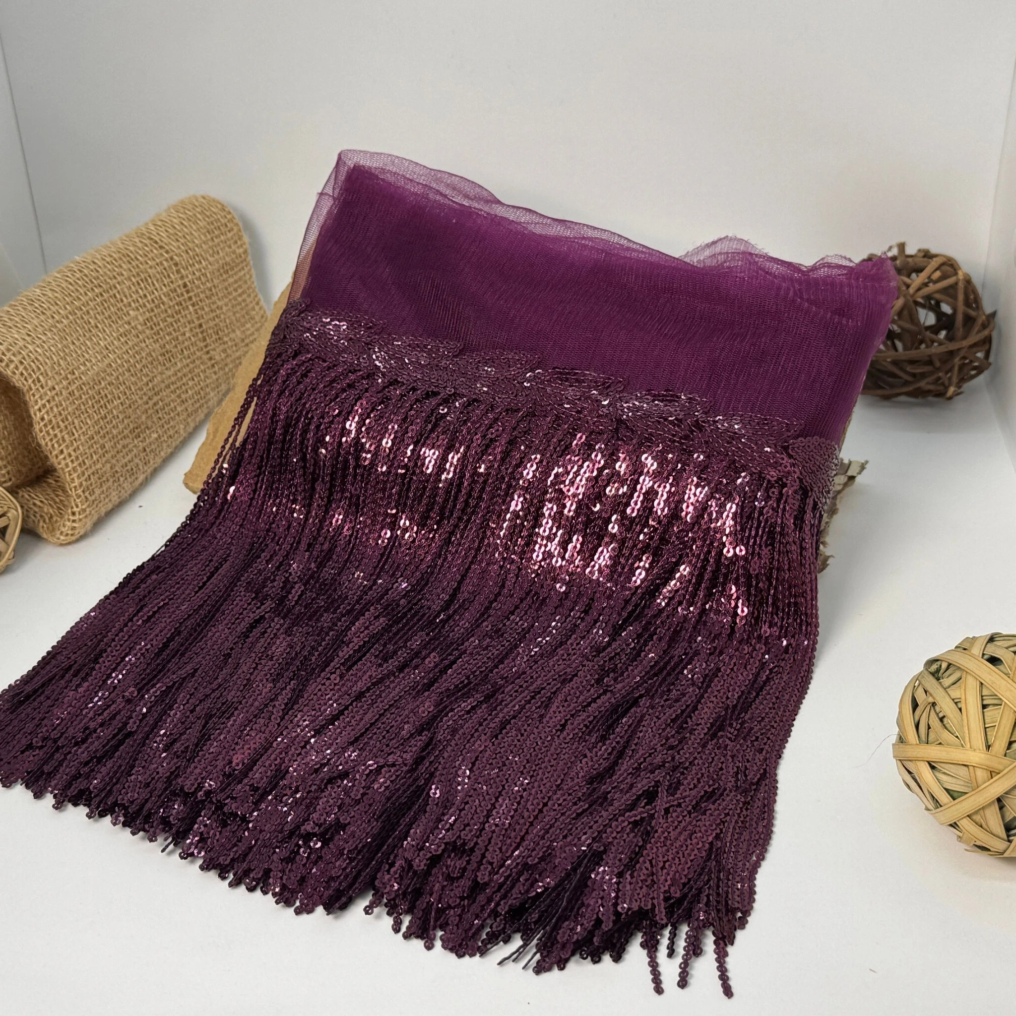 Бахрома танцювальна з паєткою на сітці «Іскри пристрасті» 20 см (9.1 метр), 35 баклажан