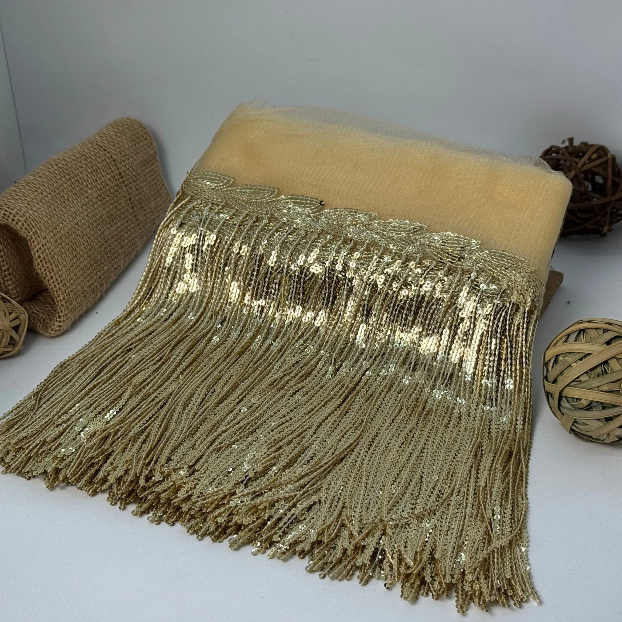 Бахрома танцювальна з паєткою на сітці «Іскри пристрасті» 20 см (9.1 метр), 5 світлий жовтий