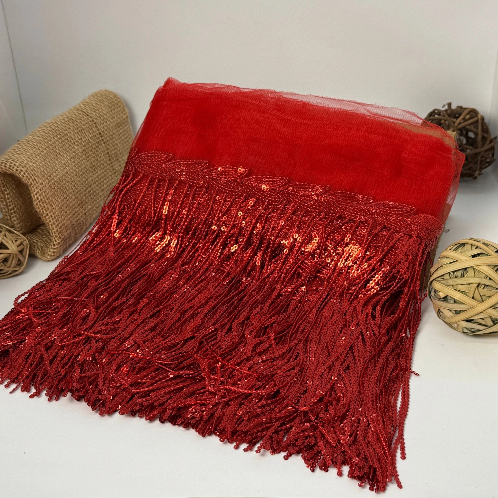 Бахрома танцювальна з паєткою на сітці «Іскри пристрасті» 20 см (9.1 метр), 9 червоний