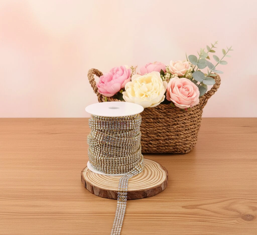Цепи з каменями — декоративні елементи від Мереживо UA, що поєднують металеву основу та вбудовані камінці для яскравого блиску й ефектного вигляду. Вони легко прикріплюються до одягу, аксесуарів або виробів, створюючи стильний та розкішний декор.