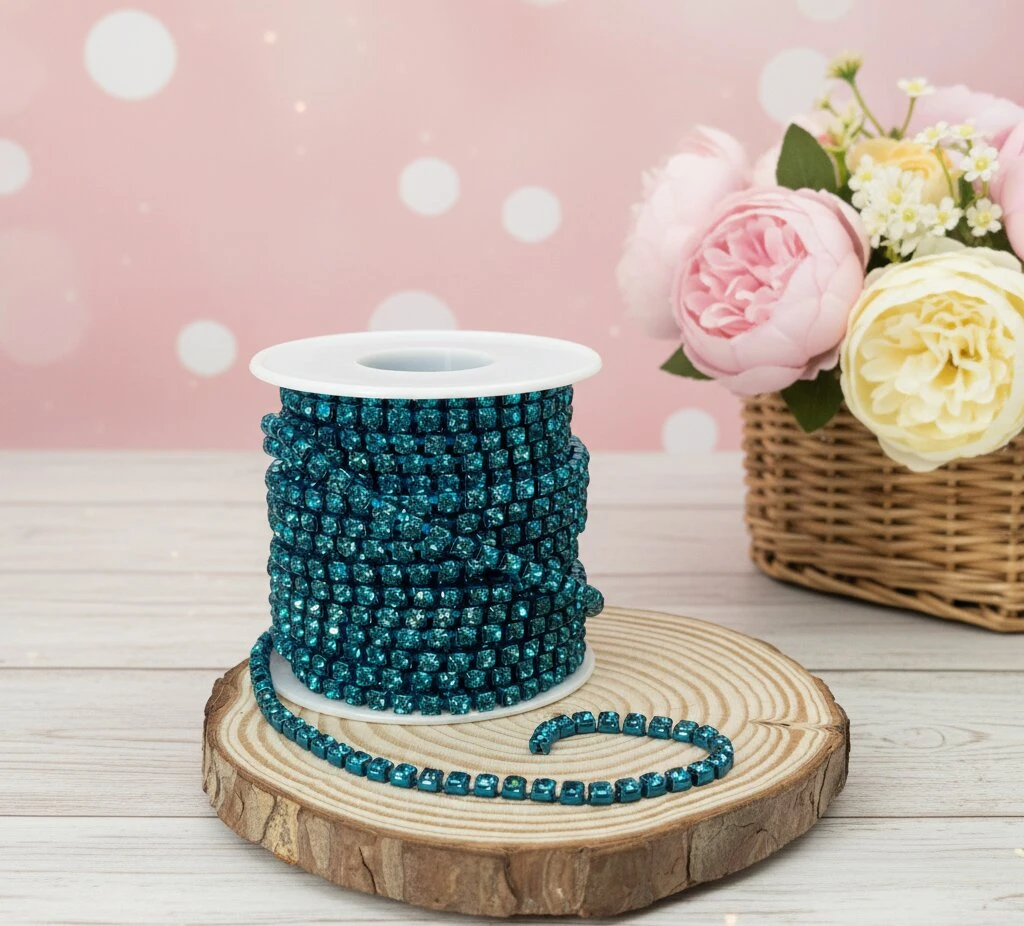 Цепи з каменями — декоративні елементи від Мереживо UA, що поєднують металеву основу та вбудовані камінці для яскравого блиску й ефектного вигляду. Вони легко прикріплюються до одягу, аксесуарів або виробів, створюючи стильний та розкішний декор.