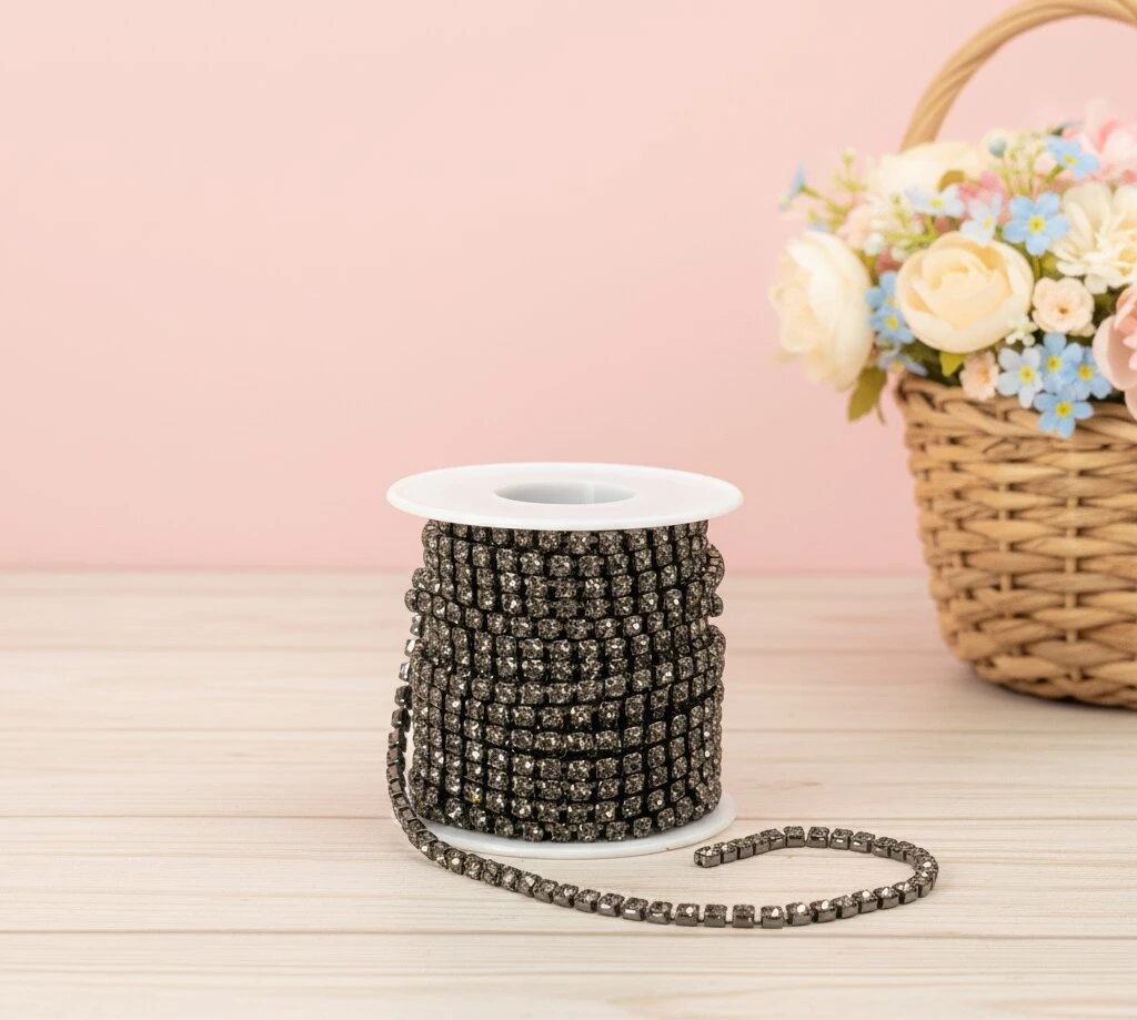 Цепи з каменями — декоративні елементи від Мереживо UA, що поєднують металеву основу та вбудовані камінці для яскравого блиску й ефектного вигляду. Вони легко прикріплюються до одягу, аксесуарів або виробів, створюючи стильний та розкішний декор.