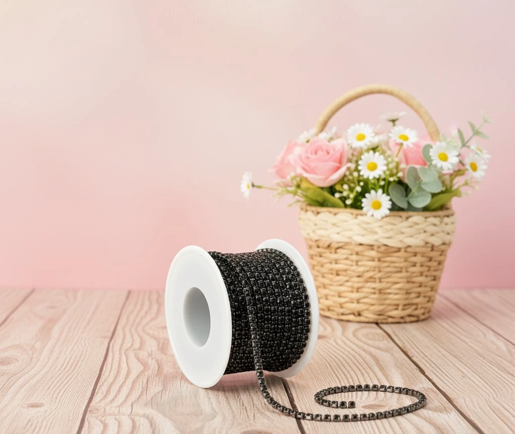 Цепи з каменями — декоративні елементи від Мереживо UA, що поєднують металеву основу та вбудовані камінці для яскравого блиску й ефектного вигляду. Вони легко прикріплюються до одягу, аксесуарів або виробів, створюючи стильний та розкішний декор.