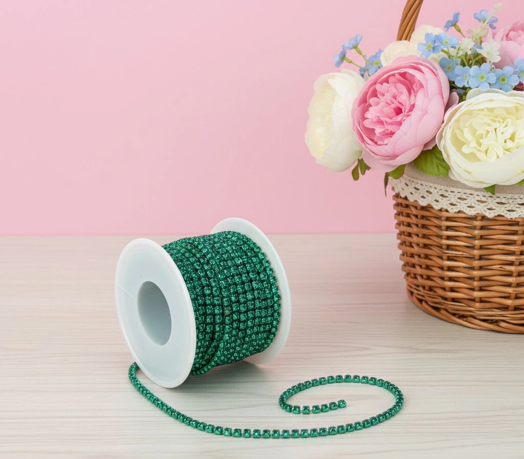Цепи з каменями — декоративні елементи від Мереживо UA, що поєднують металеву основу та вбудовані камінці для яскравого блиску й ефектного вигляду. Вони легко прикріплюються до одягу, аксесуарів або виробів, створюючи стильний та розкішний декор.