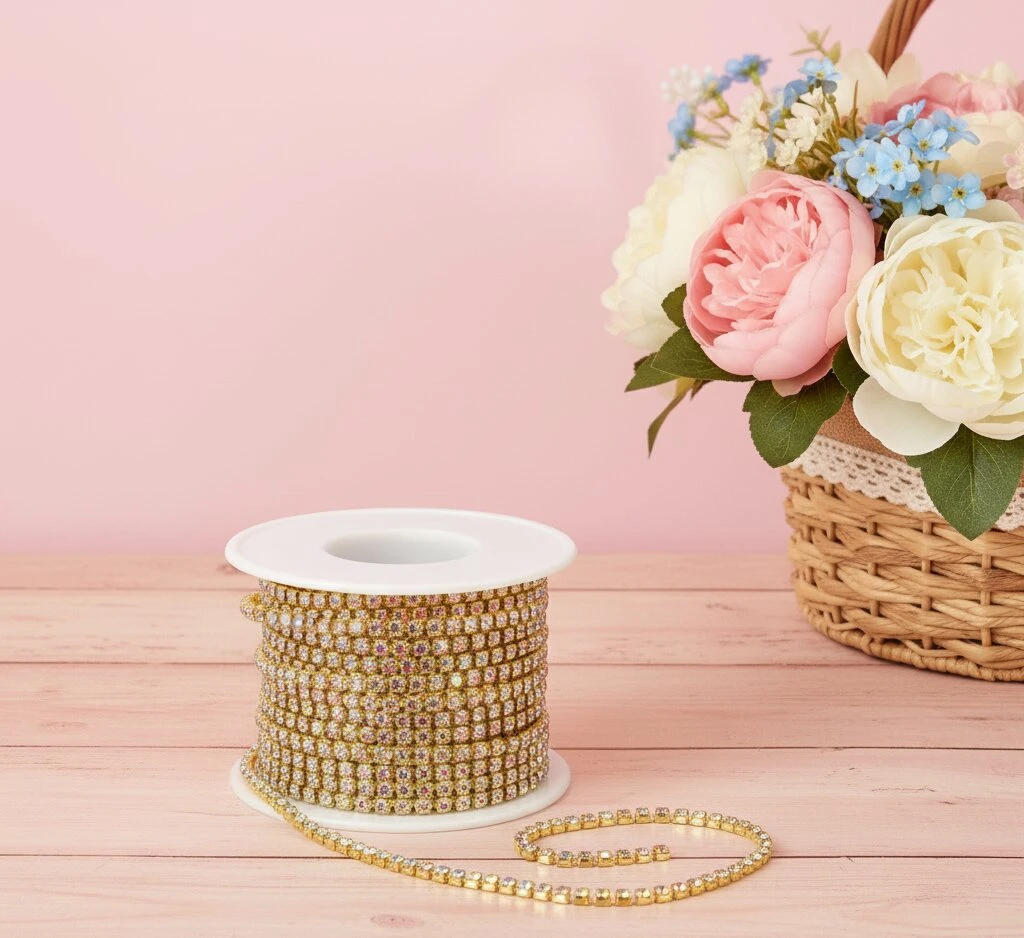 Цепи з каменями — декоративні елементи від Мереживо UA, що поєднують металеву основу та вбудовані камінці для яскравого блиску й ефектного вигляду. Вони легко прикріплюються до одягу, аксесуарів або виробів, створюючи стильний та розкішний декор.