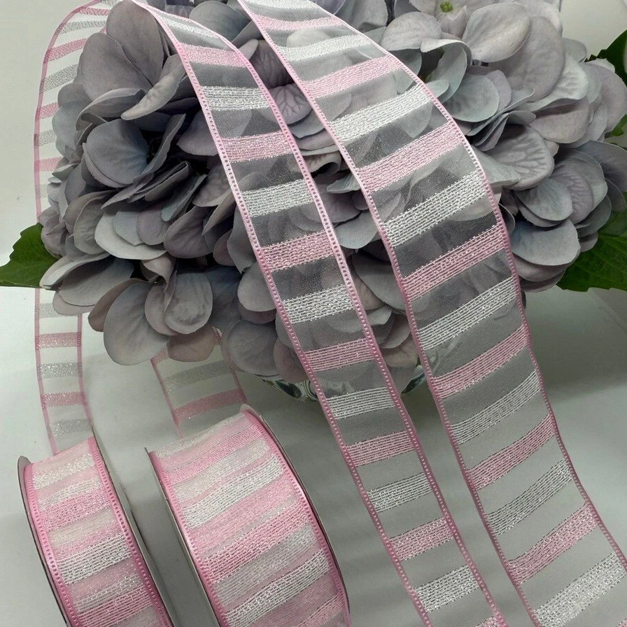 Декоративна стрічка органзова 2.5 см (18 м.), №14 рожевий+білий