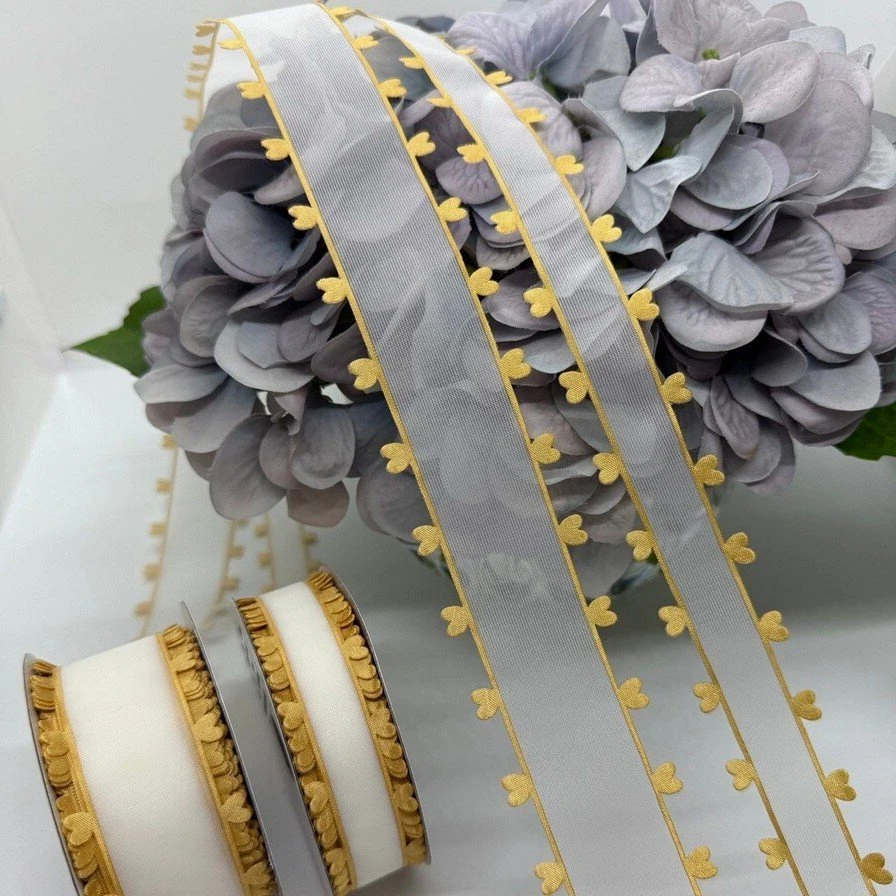 Стрічка з органзи з сердечками — ніжна, легка та напівпрозора стрічка з блиском, прикрашена милими сердечками.