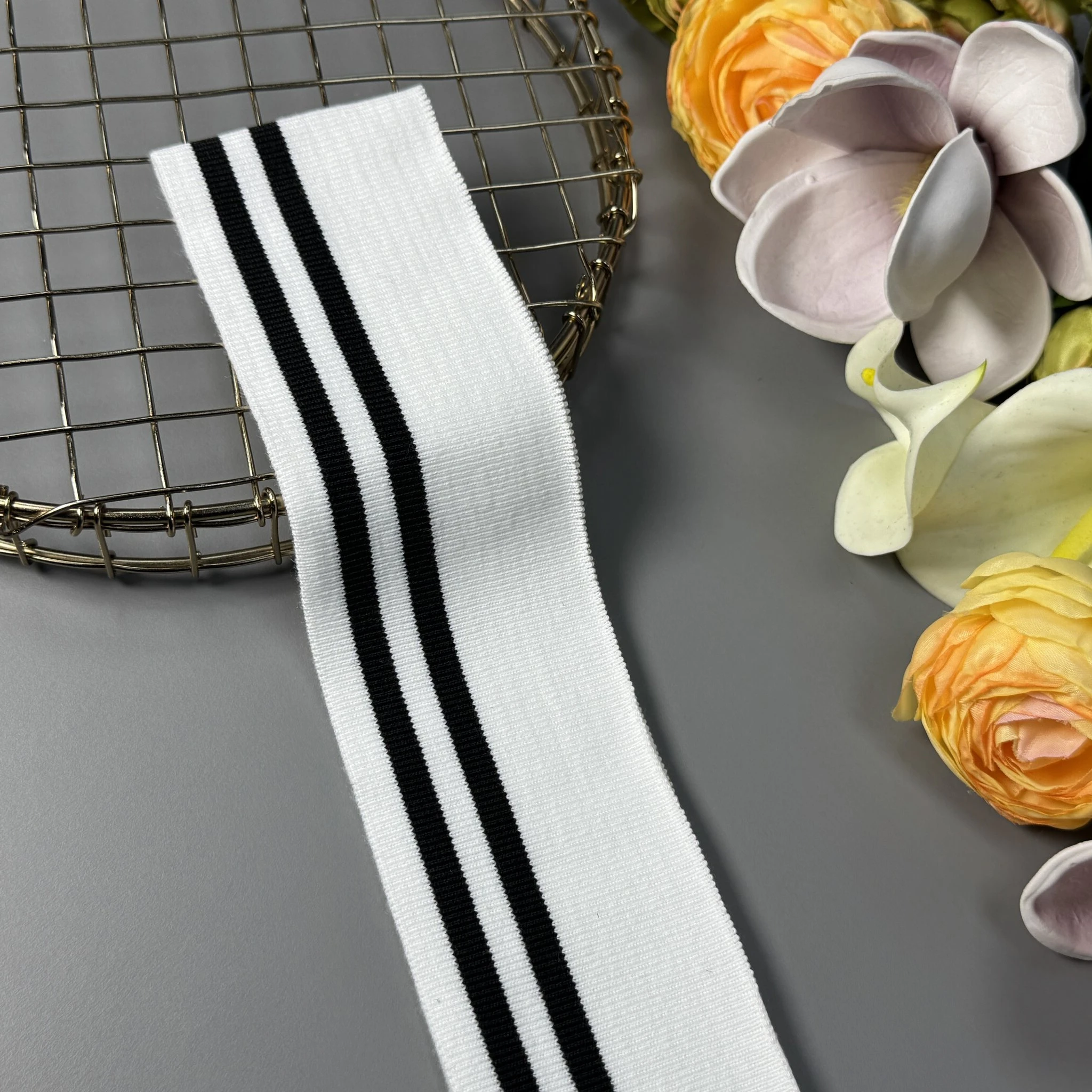 Трикотажний довяз бавовняний (6.5 см*120 см), білий+чорний