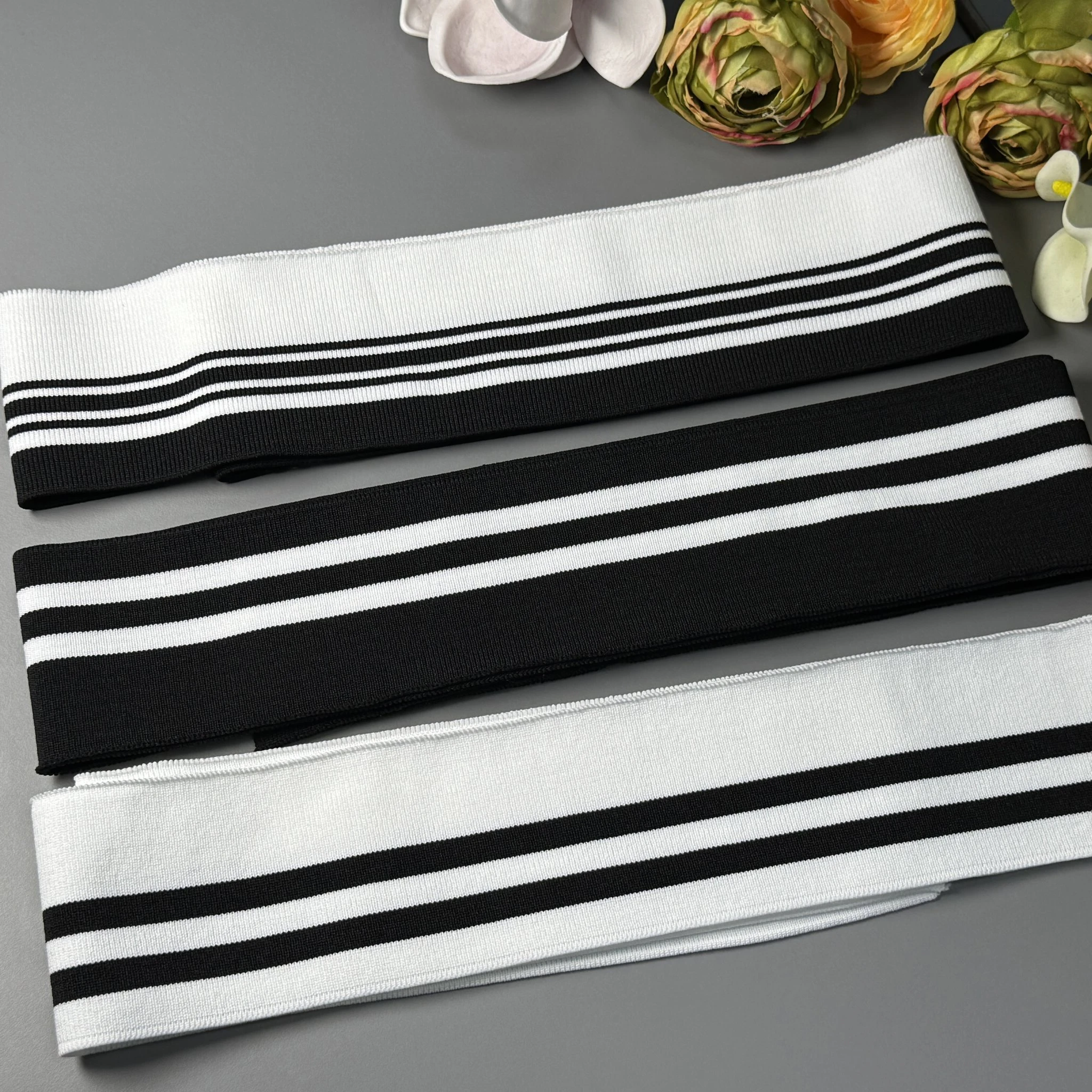 Трикотажний довяз поліестровий (6.5 см*120 см), чорний+білий дві полоси