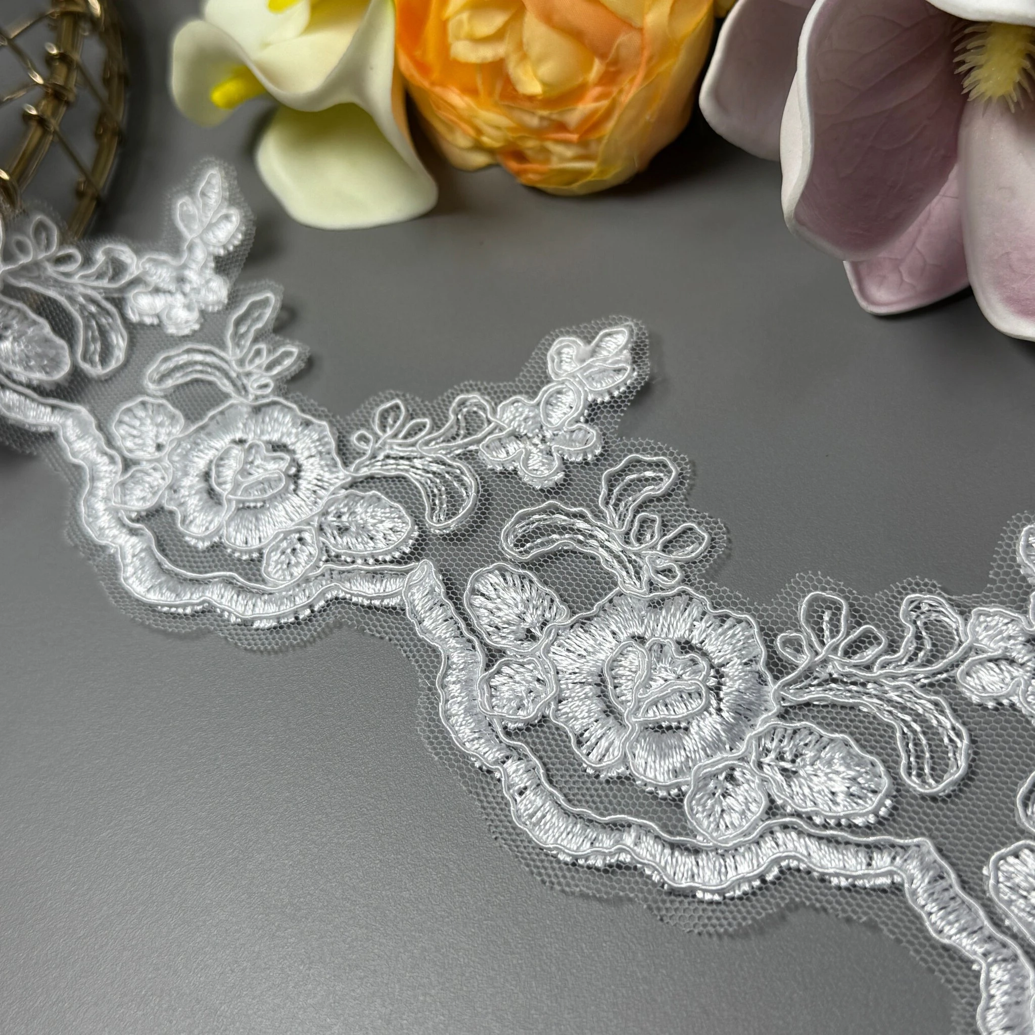 Мережево з кордовую ниткою «Літній букет» 8 см (16 ярд/14.6 м.), білий