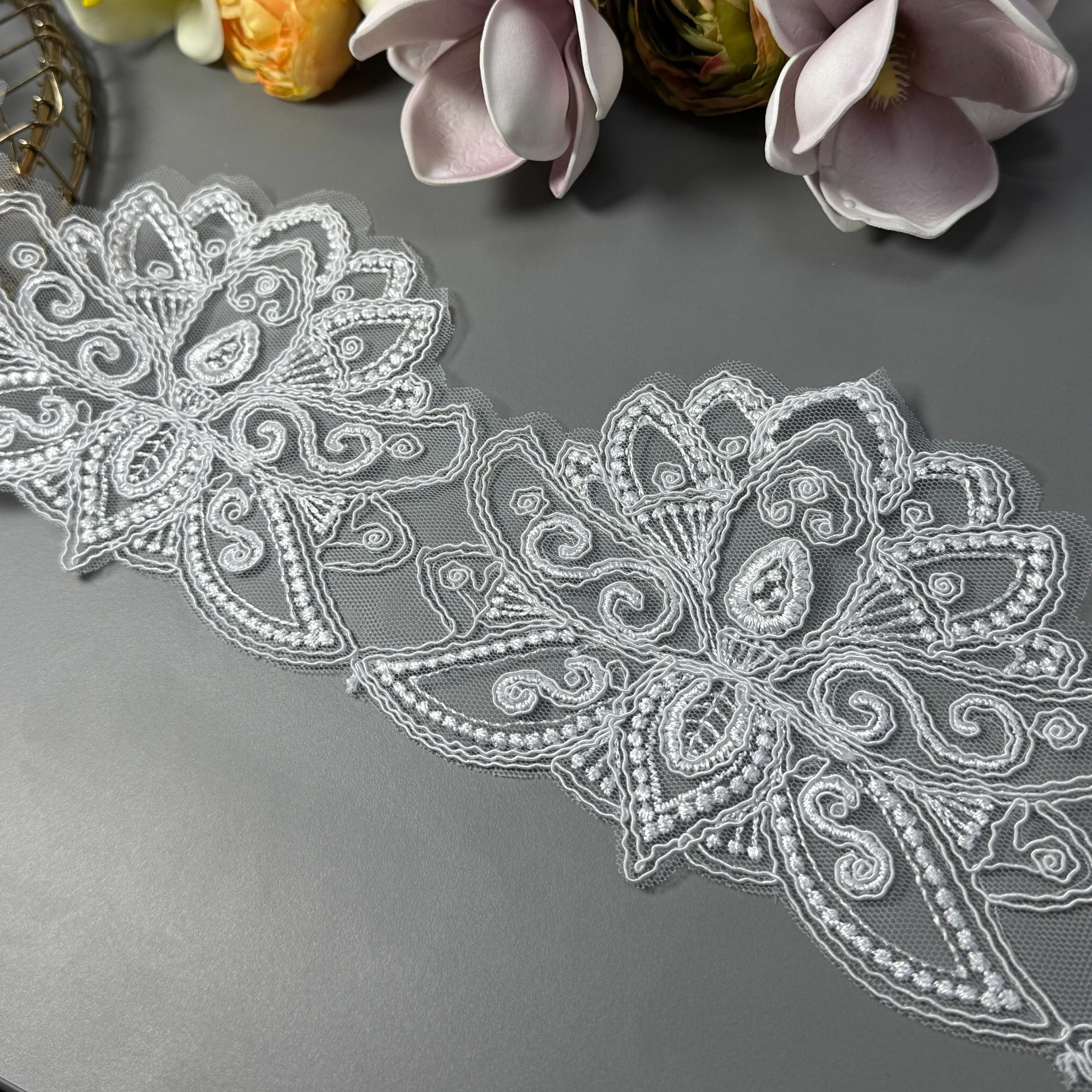 Мережево з кордовую ниткою «Ніжність весни» 12 см (1 метр), білий