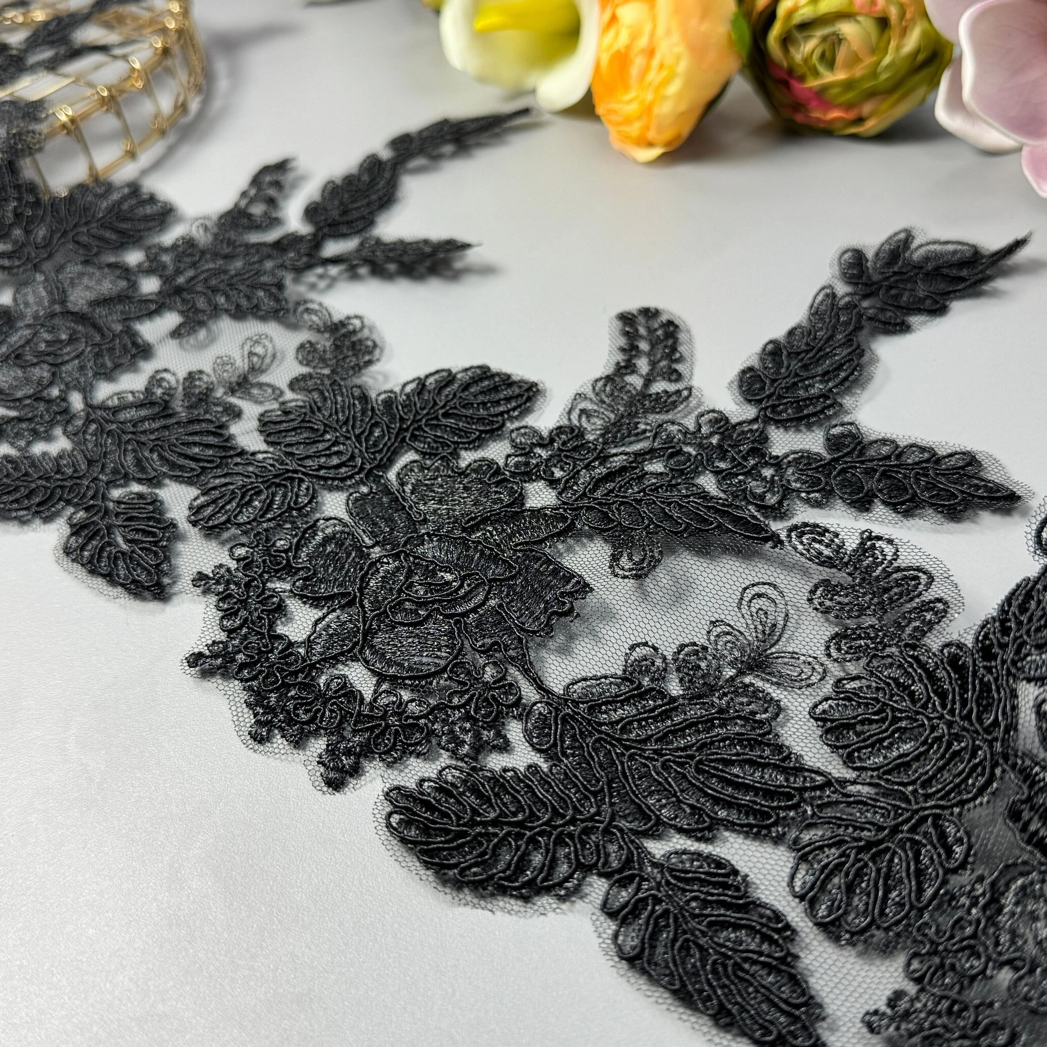 Мережево з кордовую ниткою «Ранкова роса» 21 см.(1 м.), чорний