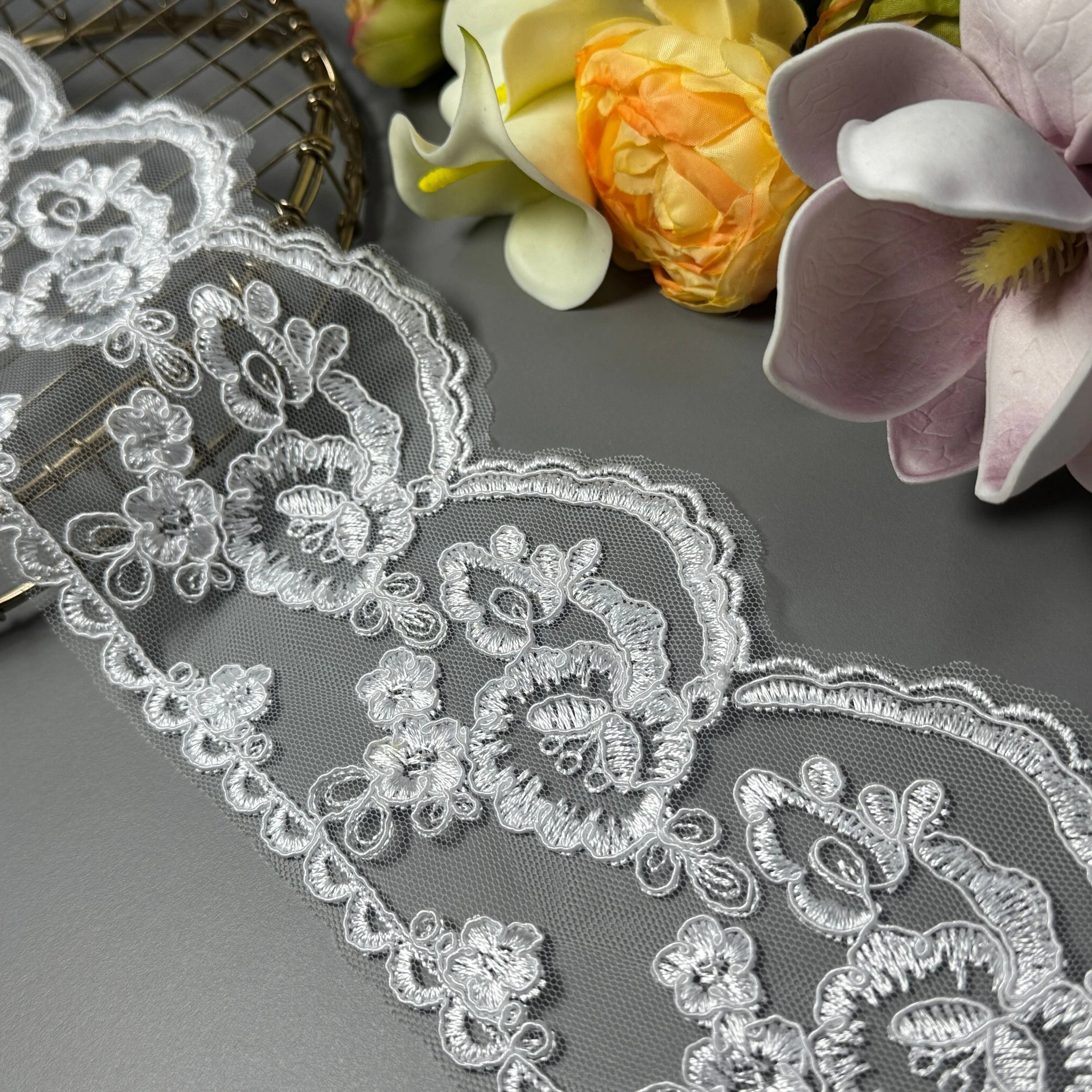 Мережево з кордовую ниткою «Сонячний сад» 10,5 см (1 метр), білий