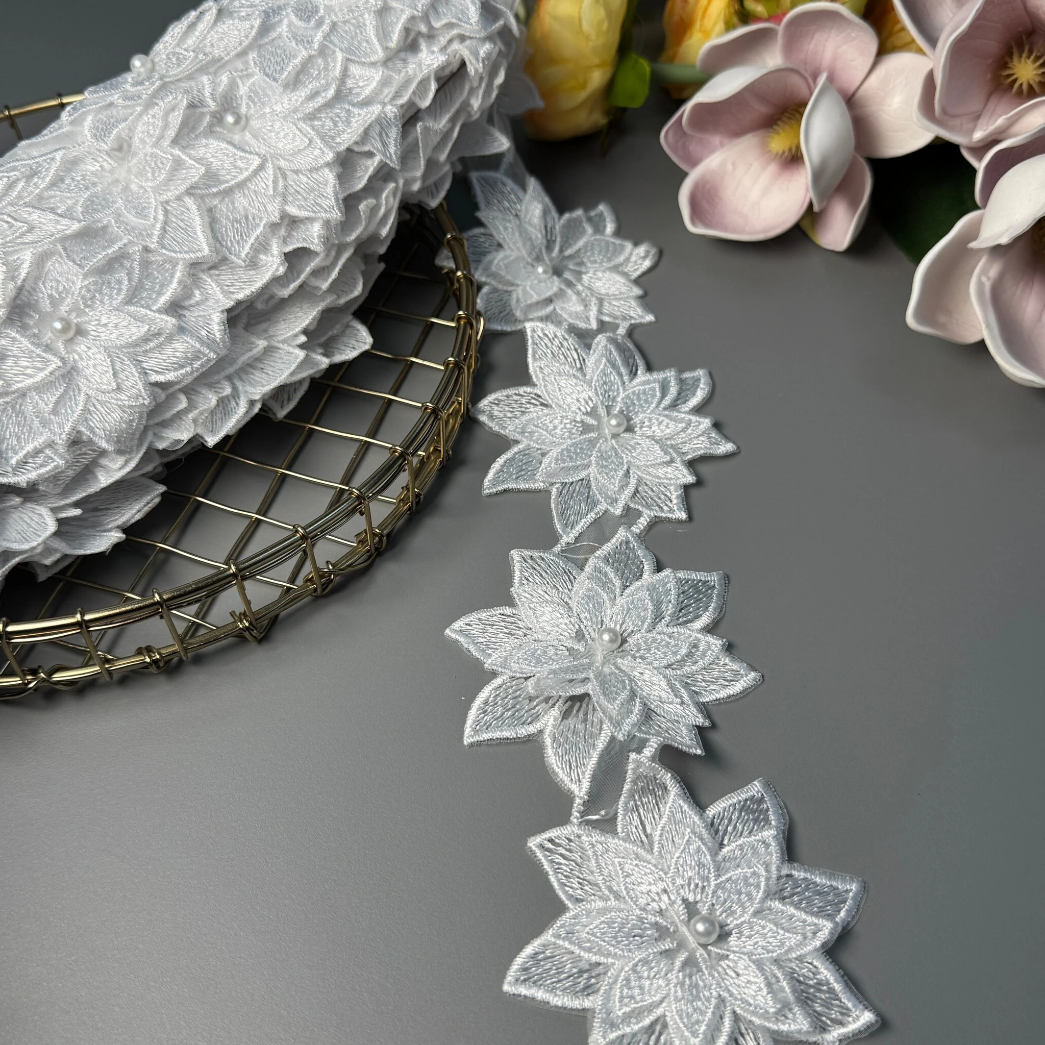Мереживо з ефектом 3D — декоративна тканина з об’ємними візерунками, які створюють відчуття глибини та рельєфу. Таке мереживо виглядає вишукано і сучасно, надаючи виробам особливого шарму.