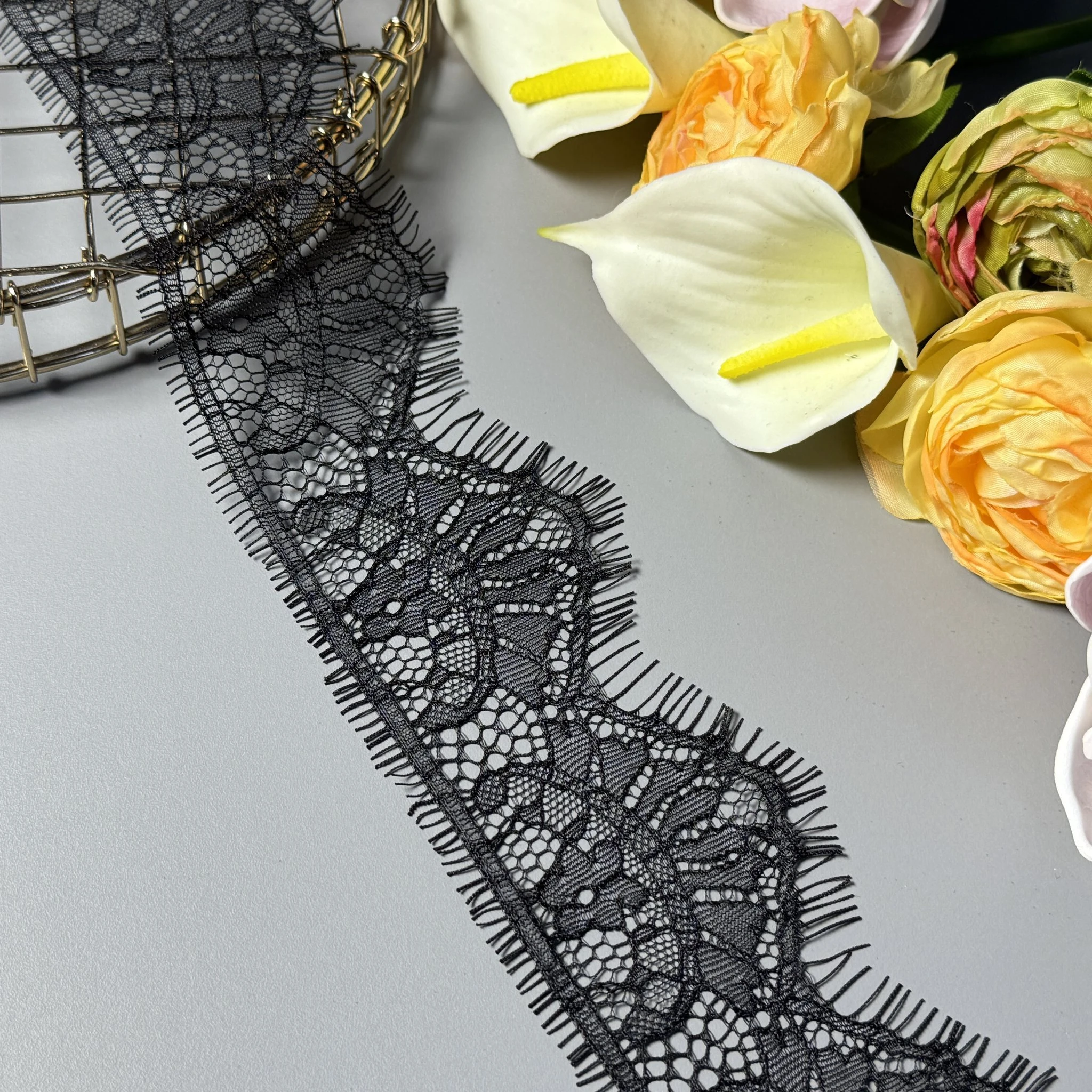 Мереживо французьке «Аромат часу» 6.5 см. (купон 3 м.), чорний