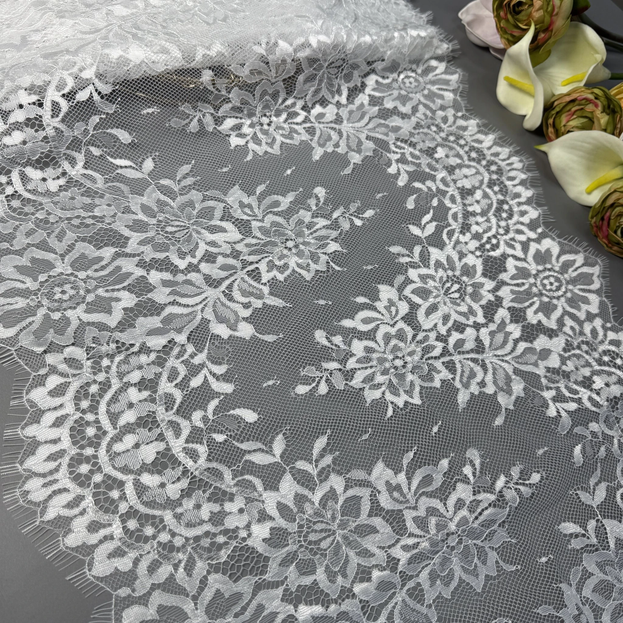 Ніжне плетіння, витончений візерунок і легкість тканини роблять це мереживо ідеальним для весільних суконь, вечірнього вбрання, білизни та елітного декору.