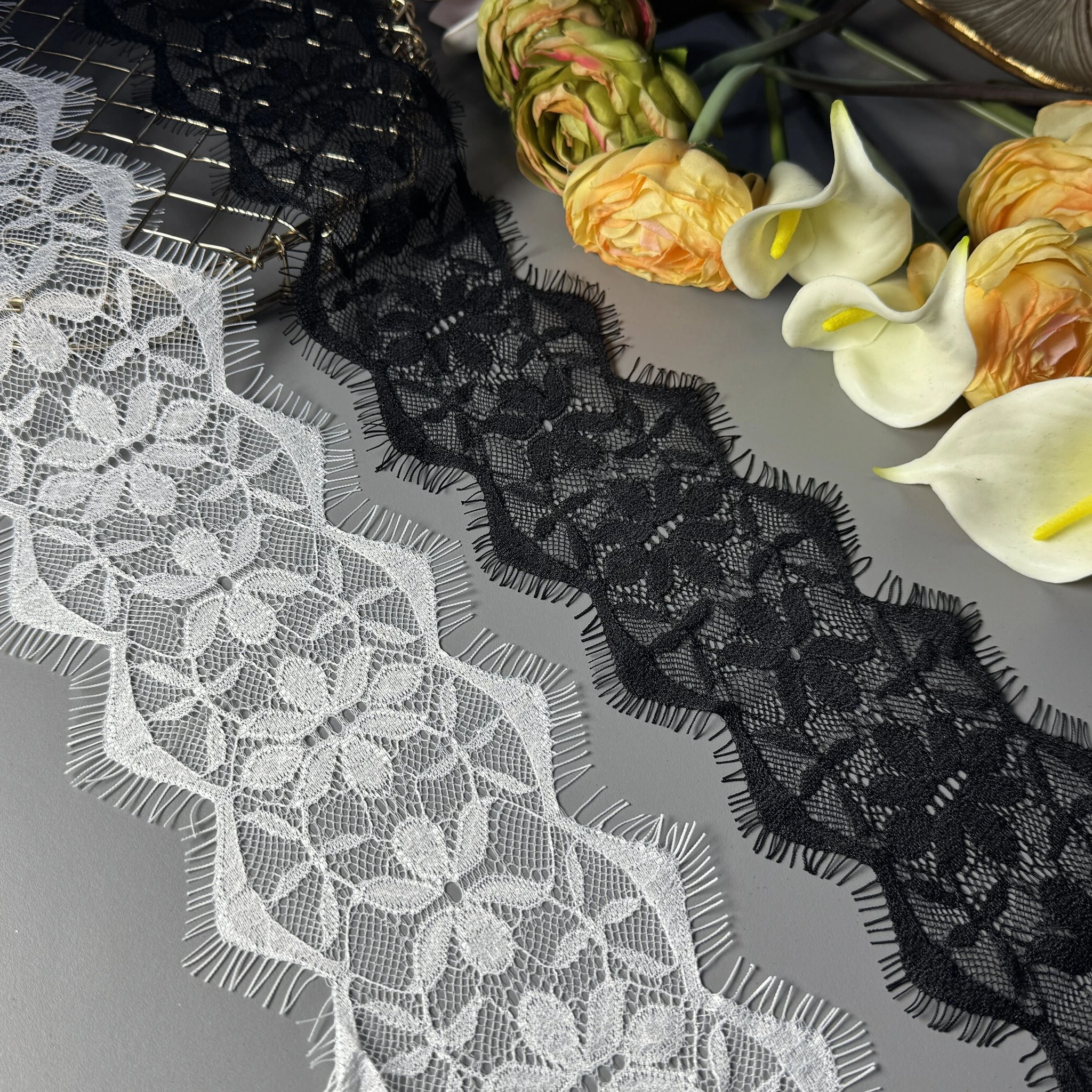 Мереживо французьке «Місячна троянда»11 см (купон 3 м.), чорний