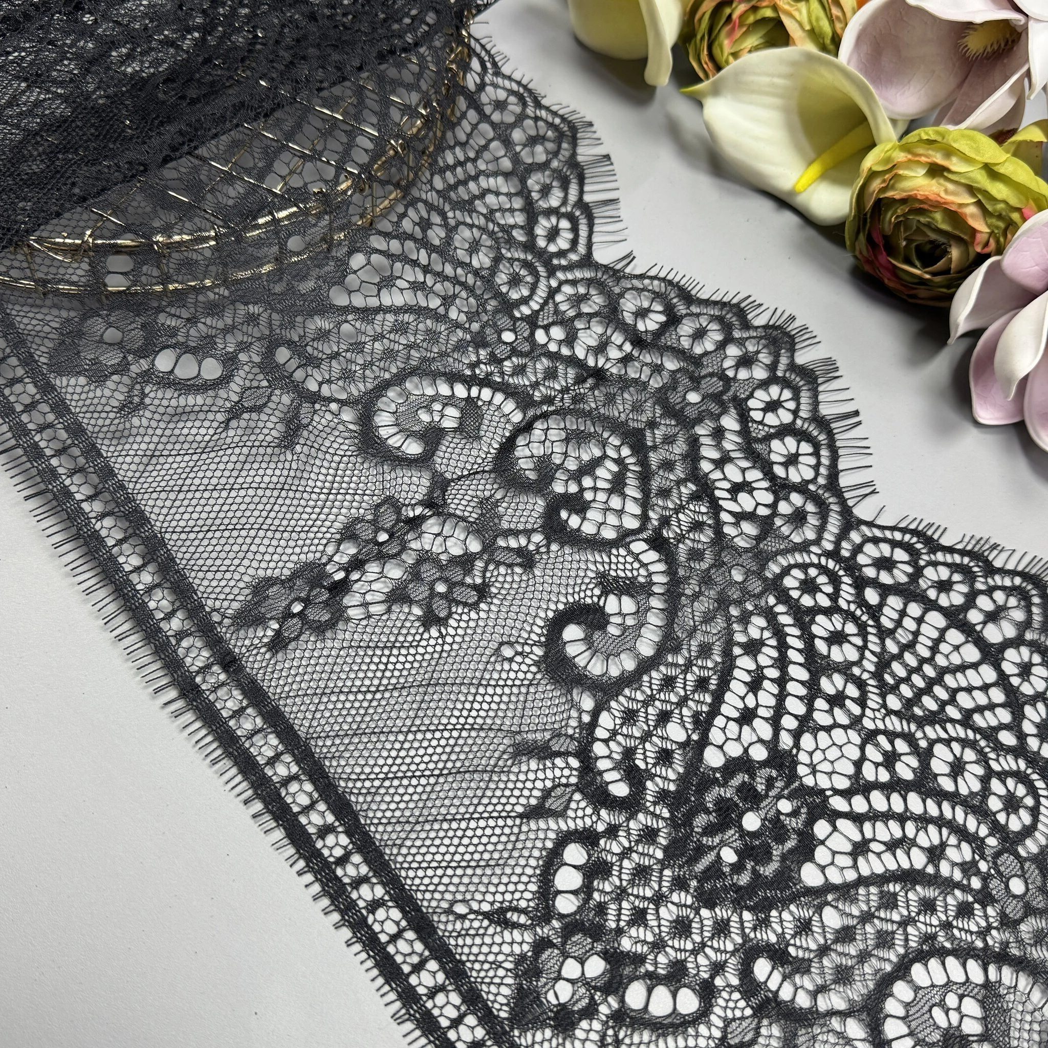 Мереживо французьке «Пелюстки сонця» 22 см. (купон 3 м.), чорний