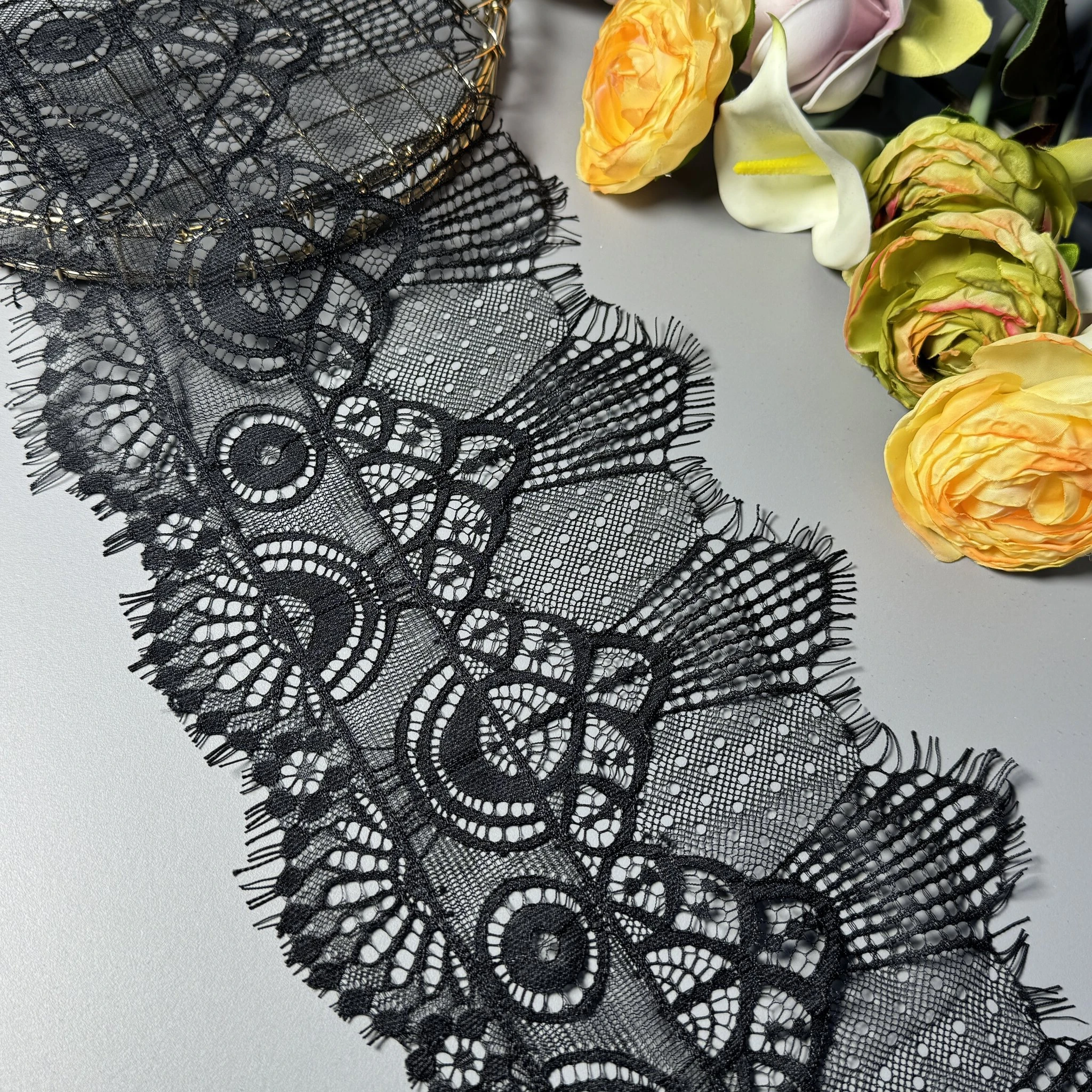 Мереживо французьке «Ранкове сяйво» 19 см. (купон 3 м.), чорний