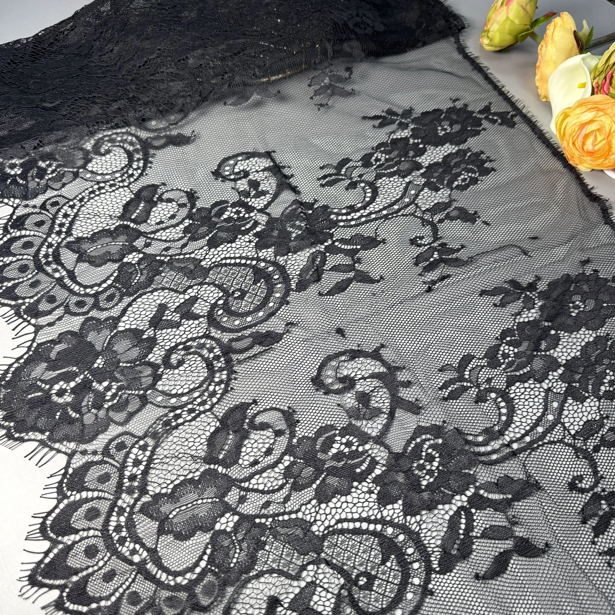 Мереживо французьке «Срібло роси»44 см. (купон 3 м.), чорний