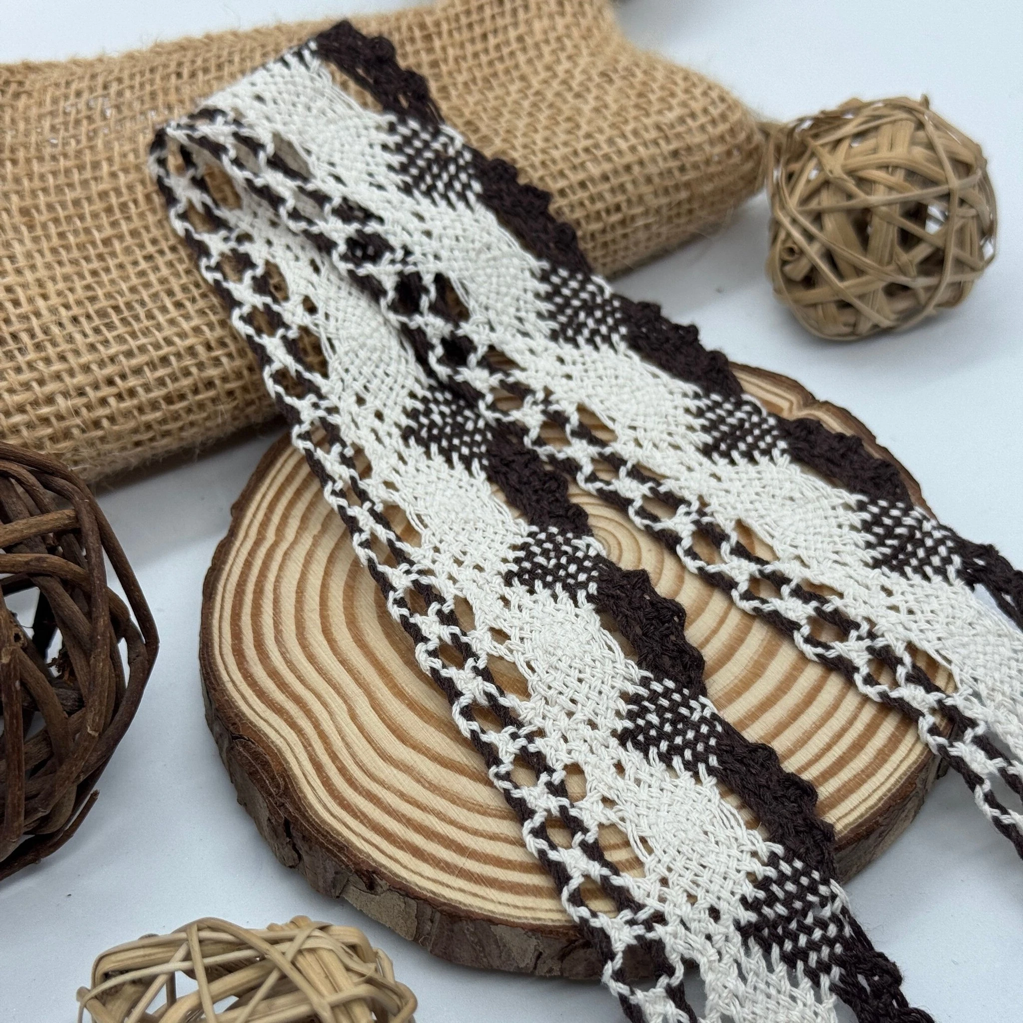 Мереживо макраме "Перлинний подих" 4 см (1 м.), коричневий+бежевий