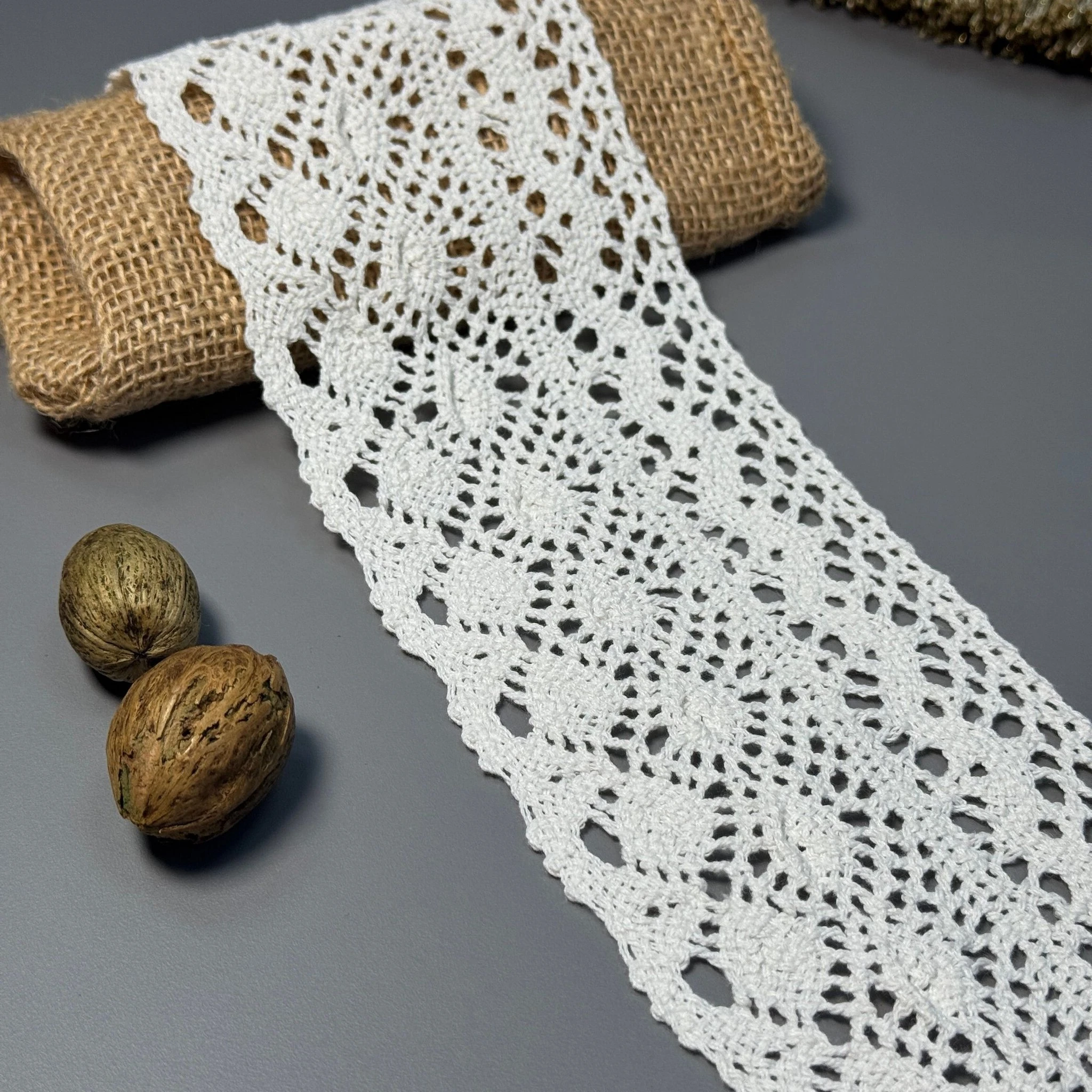 Щільне плетіння і витончений візерунок роблять це мереживо ідеальним для створення суконь, блуз, аксесуарів, декоративного текстилю та виробів handmade.