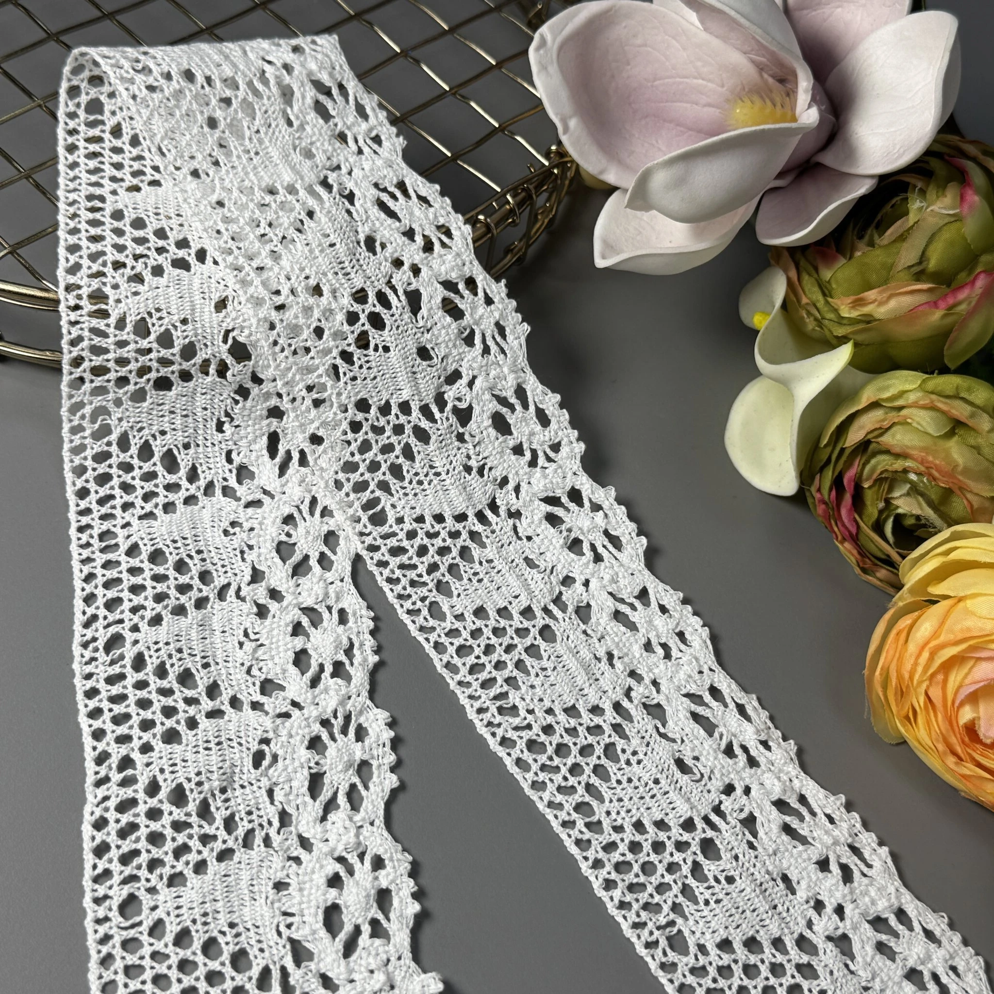 Щільне плетіння і витончений візерунок роблять це мереживо ідеальним для створення суконь, блуз, аксесуарів, декоративного текстилю та виробів handmade.