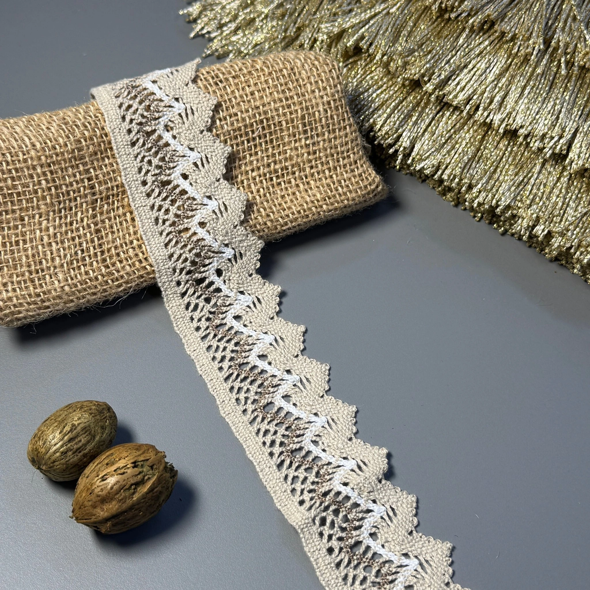 Мереживо макраме "Шовкове сяйво" 4,5 см (1 м.), бежевий+білий