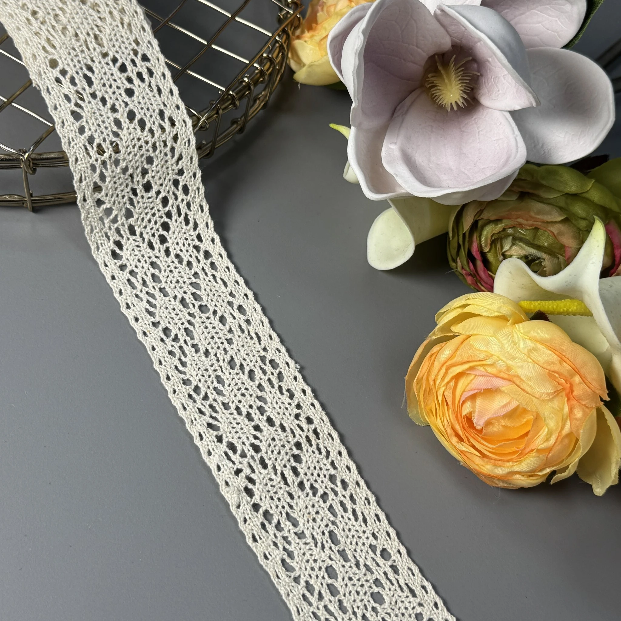Щільне плетіння і витончений візерунок роблять це мереживо ідеальним для створення суконь, блуз, аксесуарів, декоративного текстилю та виробів handmade.