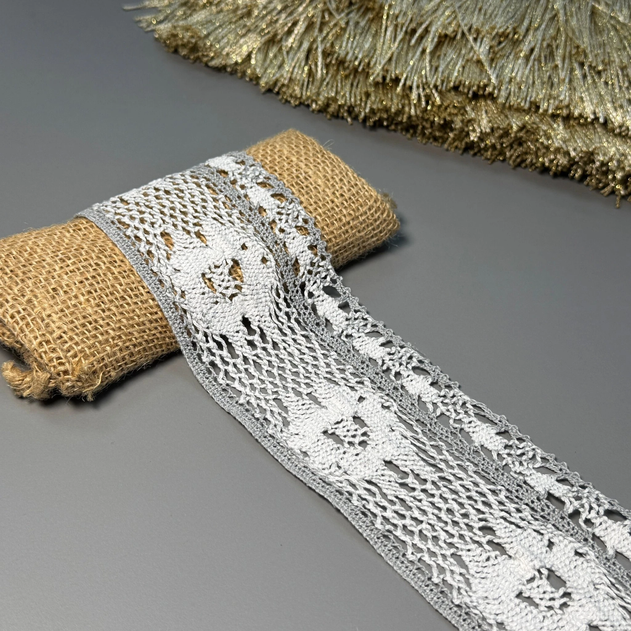 Мереживо макраме "Світло душі" 8 см (1м.), сірий+білий