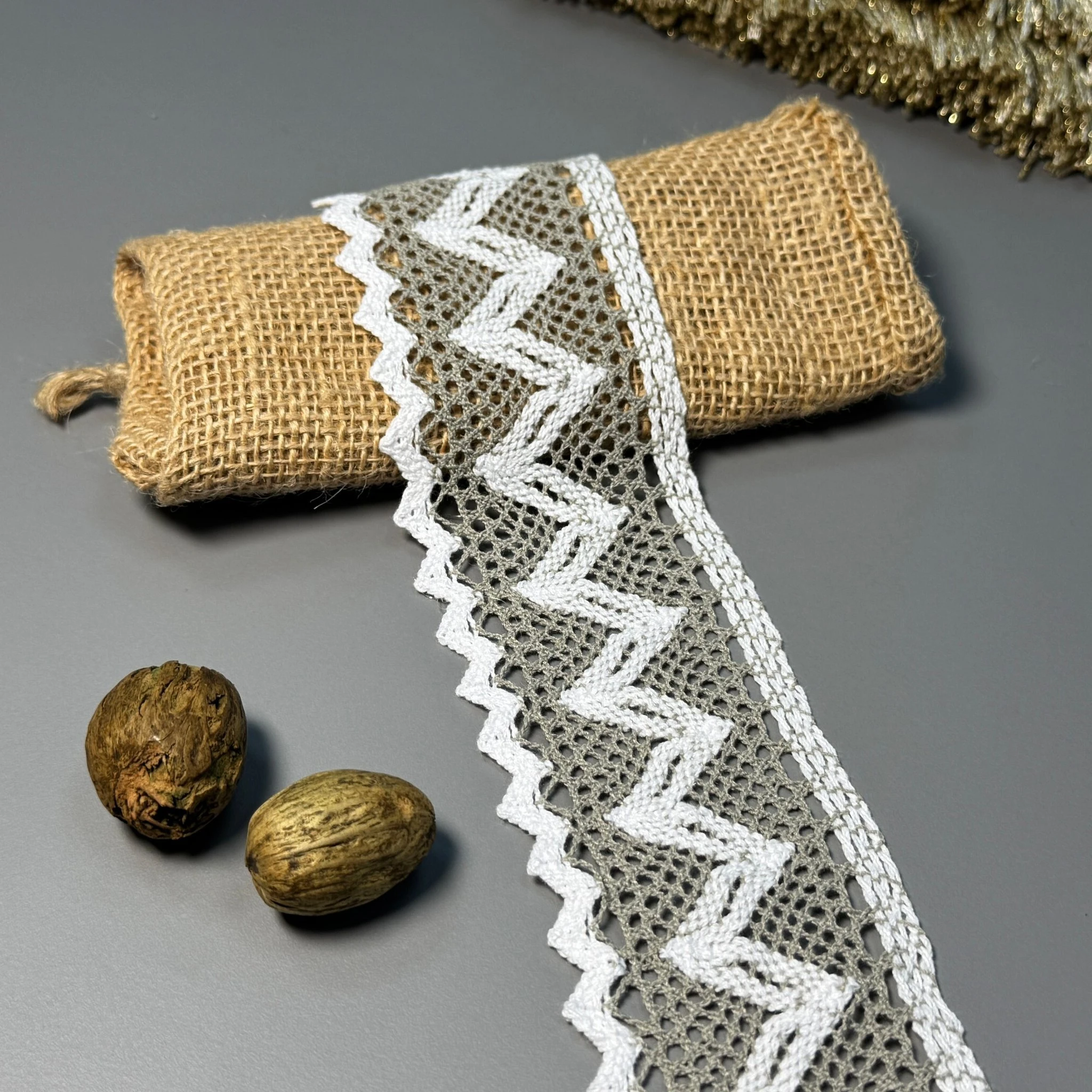 Мереживо макраме "Подих вітру" 6 см (1м), темно бежевий+білий
