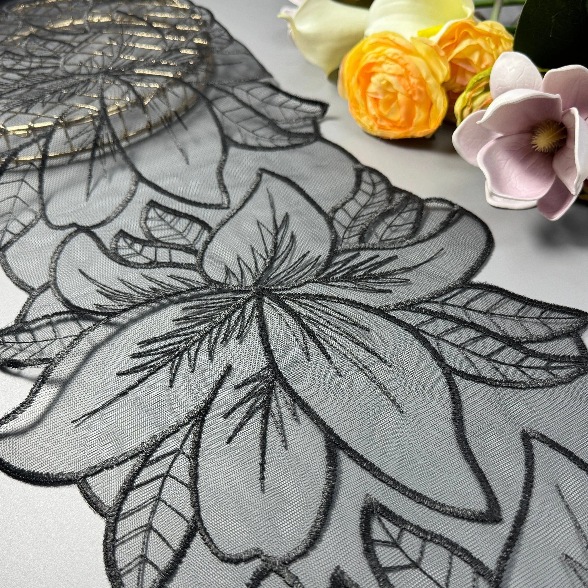 Мереживо органза «Ніжність лілії»25 см (1 м.), чорний