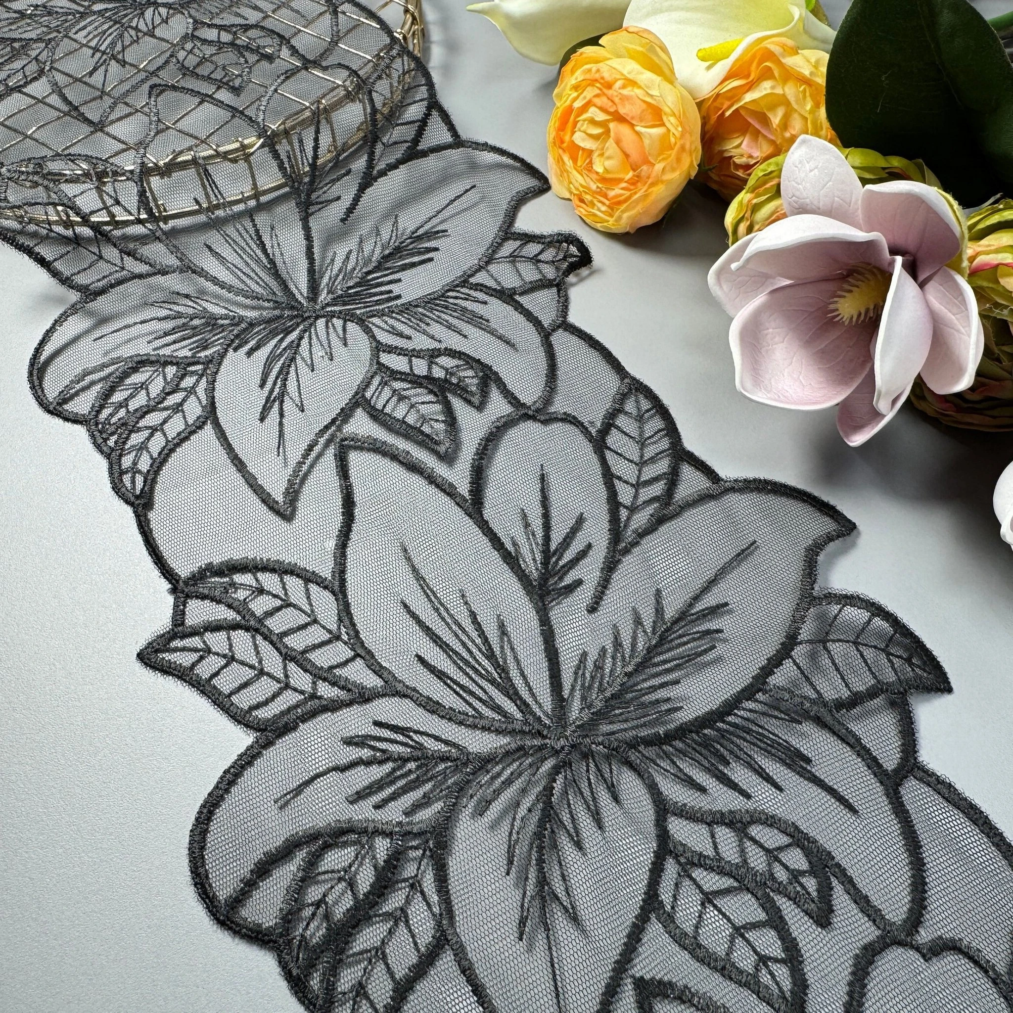 Мереживо органза «Сніжна орхідея» 20 см (1 м.), чорний