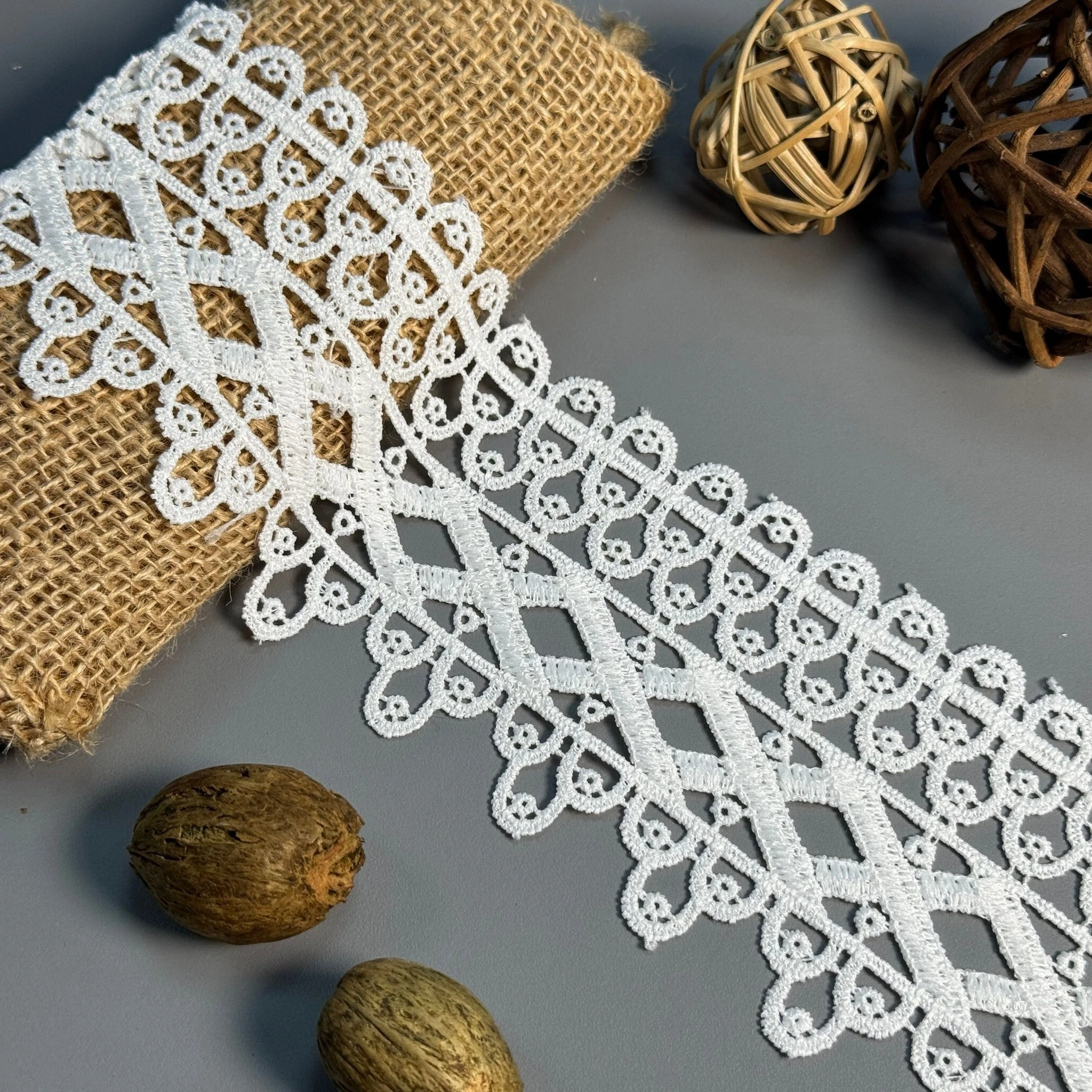 Щільне плетіння і витончений візерунок роблять це мереживо ідеальним для створення суконь, блуз, аксесуарів, декоративного текстилю та виробів handmade.