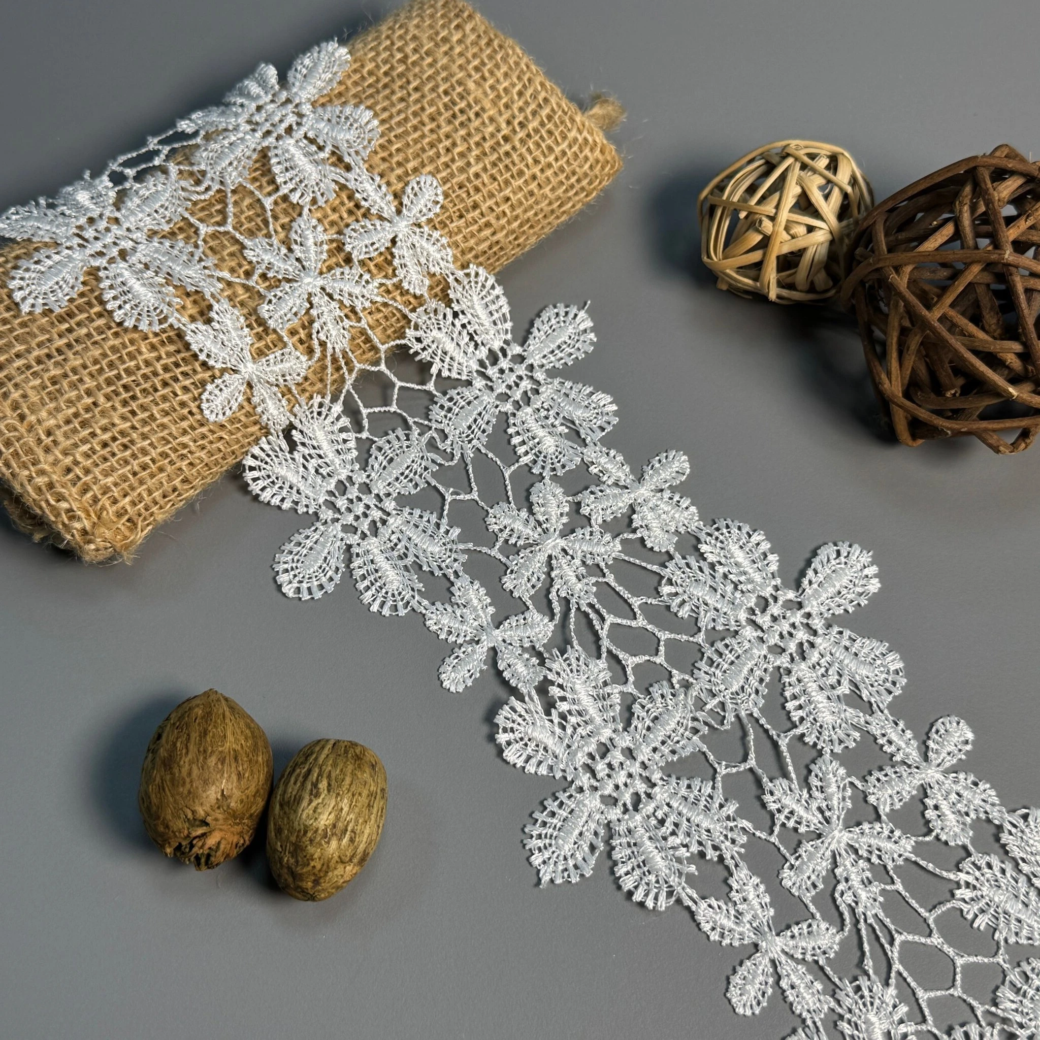 Мереживо поліестер — це красивий і практичний матеріал, який поєднує ніжність мереживного плетіння з міцністю синтетичних волокон. Воно добре тримає форму, не розтягується, не вицвітає та зберігає свій вигляд після багатьох прань.