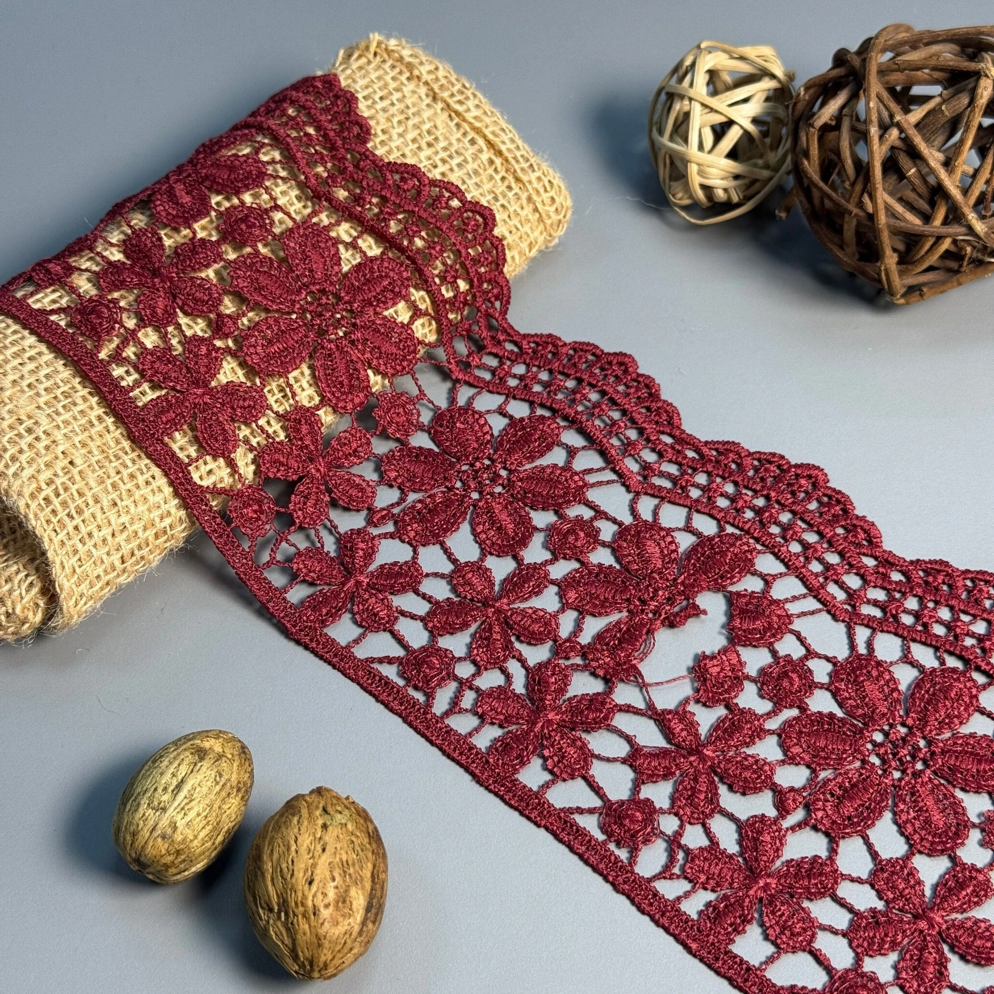 Мереживо поліестер "Квітковий рай" 10 см.(1 м.), бордовий (19.8 метрів)