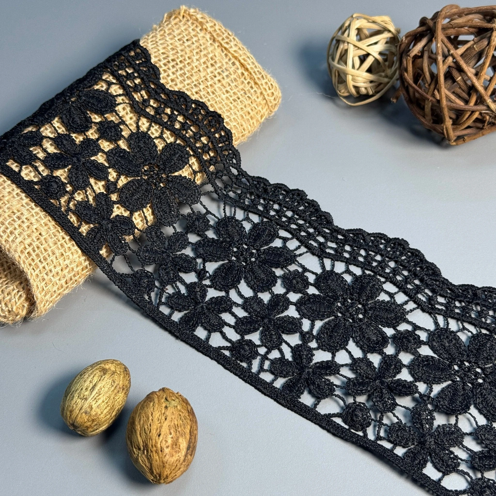 Мереживо поліестер "Квітковий рай" 10 см.(1 м.), чорний (20 метрів)