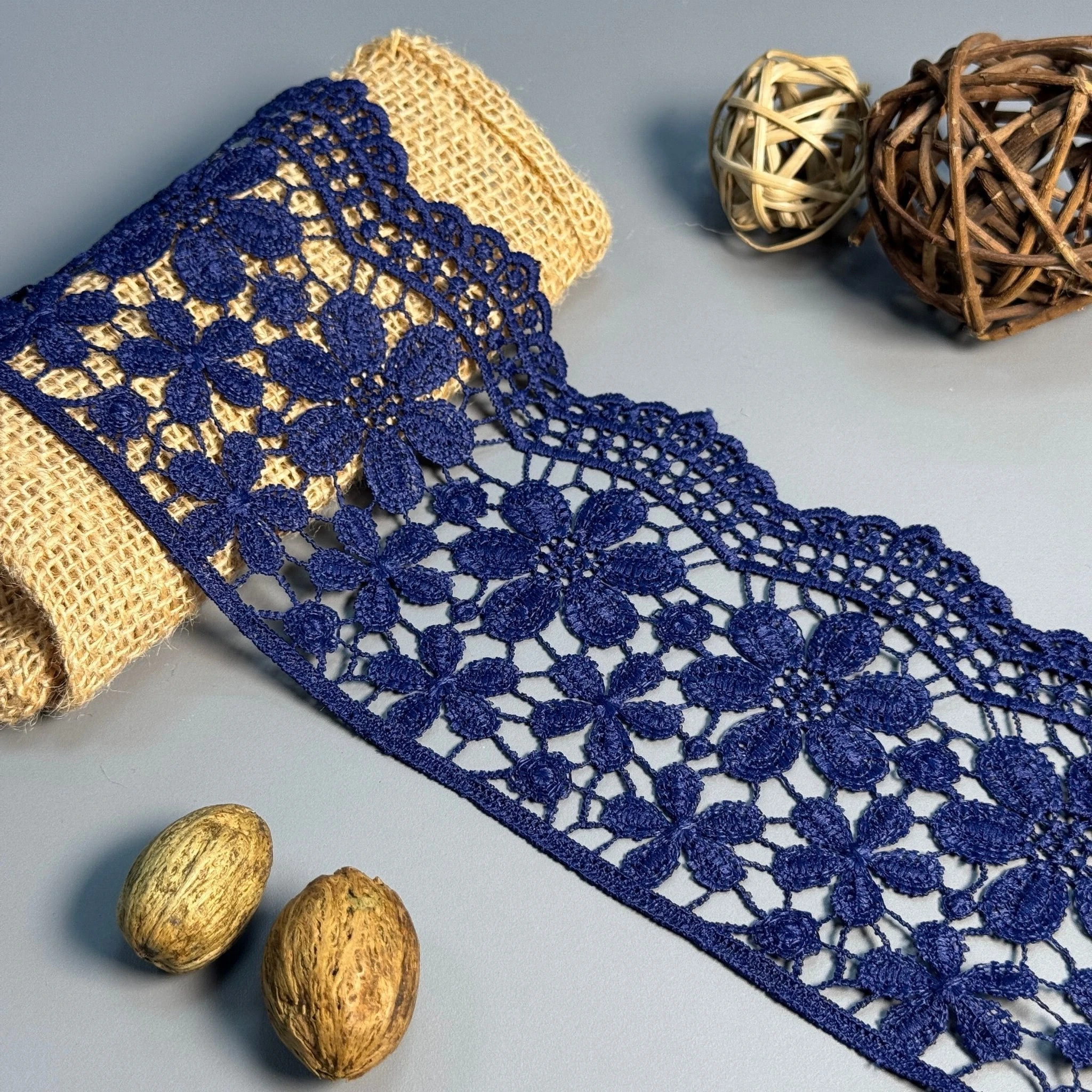 Мереживо поліестер "Квітковий рай" 10 см.(1 м.), синій (19.8 метрів)